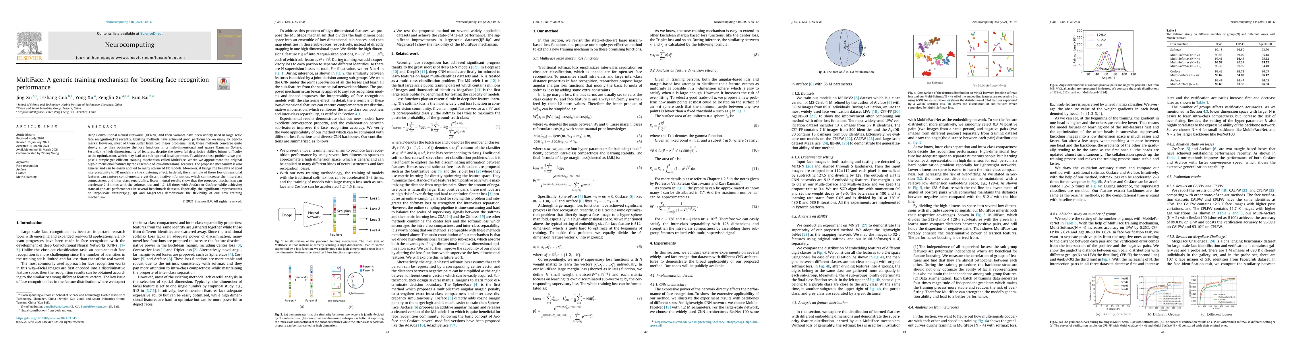 A new training mechanism called MultiFace is proposed to boost face recognition performance by approximating high-dimensional features with an ensemble of low-dimensional features, achieving 2-3x acceleration and state-of-the-art results on several benchmark datasets.