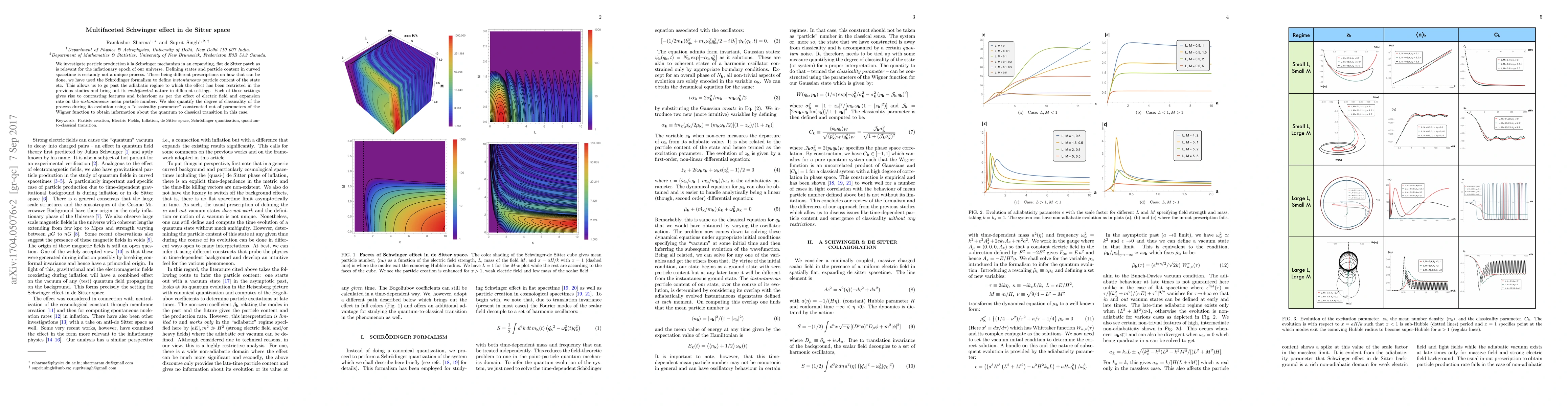 This paper explores particle production via the Schwinger mechanism in an expanding de Sitter space, employing the Schrödinger formalism to define particle states. It reveals multifaceted effects influenced by electric fields and expansion rates, and quantifies the degree of classicality using a classicality parameter derived from the Wigner function.