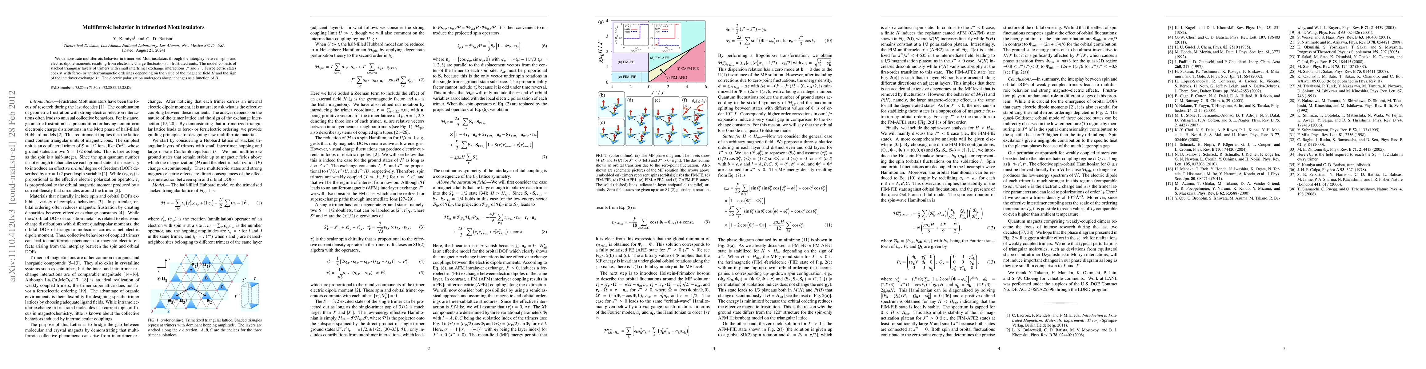 Researchers discovered multiferroic behavior in trimerized Mott insulators, where spins and electric dipole moments interact through electronic charge fluctuations, leading to abrupt changes in polarization with magnetic field strength.