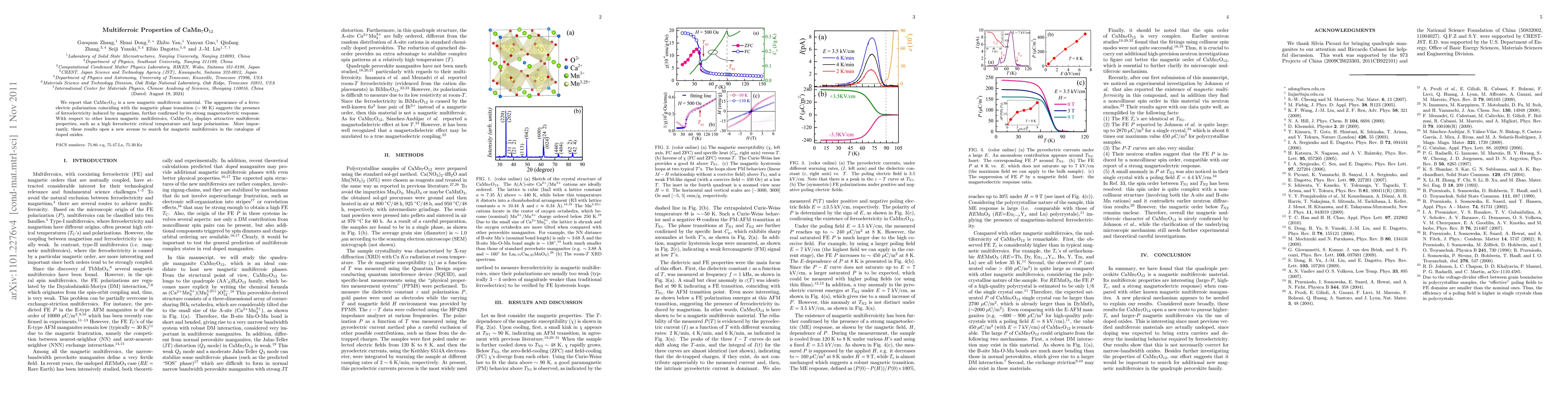 CaMn$_7$O$_{12}$ is identified as a new magnetic multiferroic material with a ferroelectric polarization emerging at its magnetic phase transition around 90 K, demonstrating strong magnetoelectric coupling. This discovery highlights its high ferroelectric critical temperature and large polarization, suggesting potential for new research in doped oxides.
