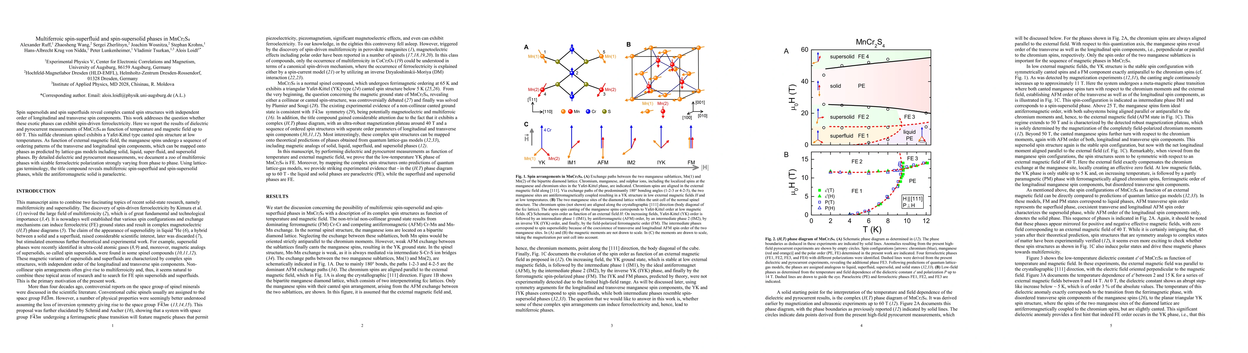 Researchers discovered multiferroic spin-superfluid and spin-supersolid phases in MnCr2S4, a chromium spinel sulfide, which exhibit complex canted spin structures with independent longitudinal and transverse spin components.
