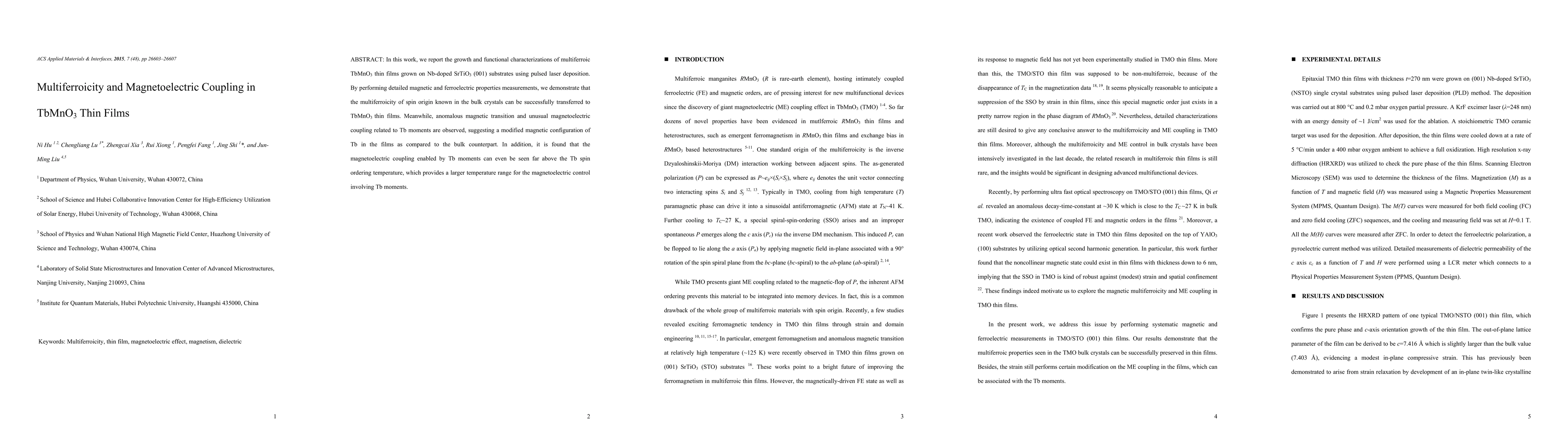 This paper reports the successful growth of multiferroic TbMnO3 thin films on Nb-doped SrTiO3 substrates, demonstrating transferred multiferroicity and unusual magnetoelectric coupling due to modified Tb magnetic configurations, extending the temperature range for magnetoelectric control.