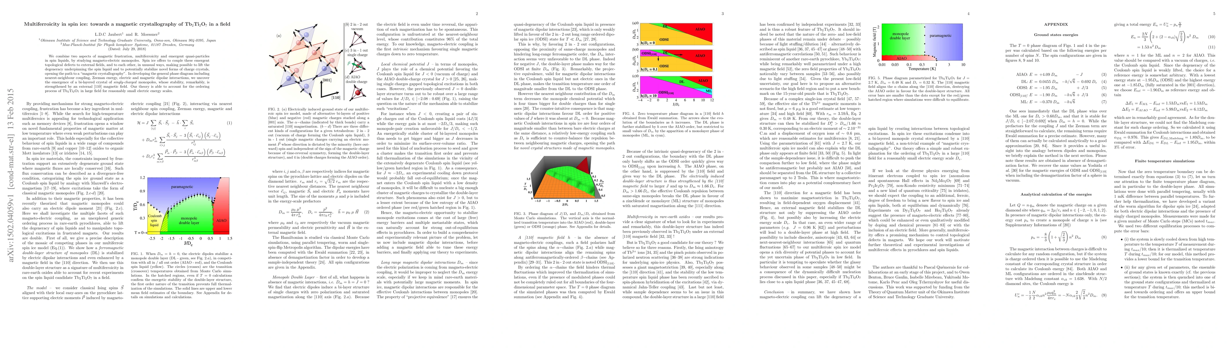 We combine two aspects of magnetic frustration, multiferroicity and emergent quasi-particles in spin liquids, by studying magneto-electric monopoles. Spin ice offers to couple these emergent topological defects to external fields, and to each other, in unusual ways, making possible to lift the degeneracy underpinning the spin liquid and to potentially stabilize novel forms of charge crystals, opening the path to a "magnetic crystallography". In developing the general phase diagram including nearest-neighbour coupling, Zeeman energy, electric and magnetic dipolar interactions, we uncover the emergence of a bi-layered crystal of singly-charged monopoles, whose stability, remarkably, is strengthened by an external [110] magnetic field. Our theory is able to account for the ordering process of Tb2Ti2O7 in large field for reasonably small electric energy scales.