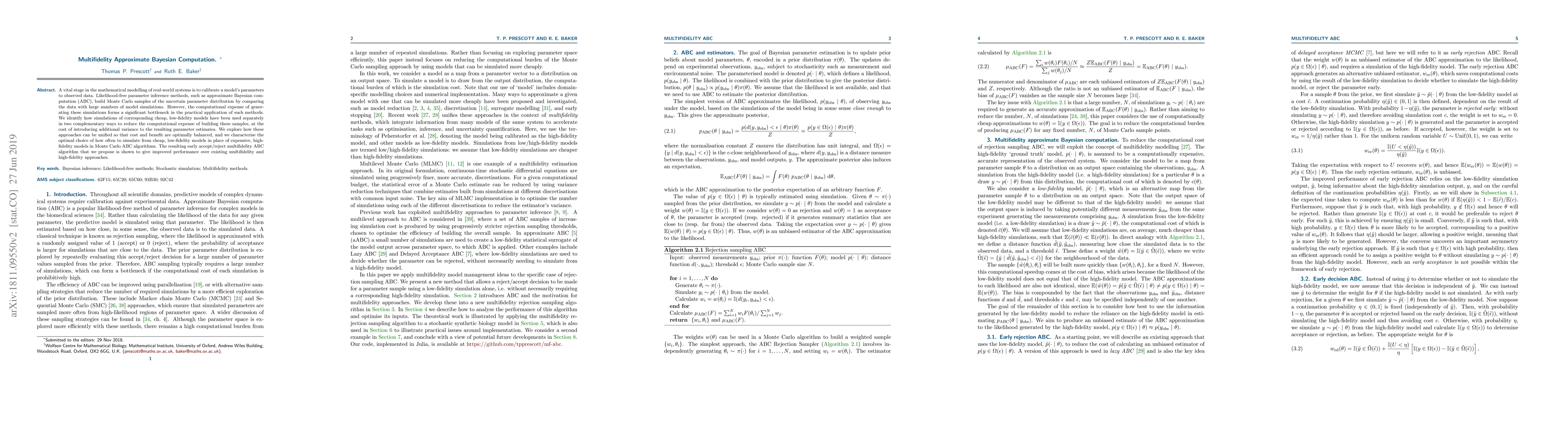 This paper proposes a multifidelity Approximate Bayesian Computation (ABC) algorithm that optimally balances computational cost and accuracy by using low-fidelity models to reduce simulation expense while maintaining parameter estimate quality. The new early accept/reject multifidelity ABC algorithm demonstrates improved performance compared to existing methods.