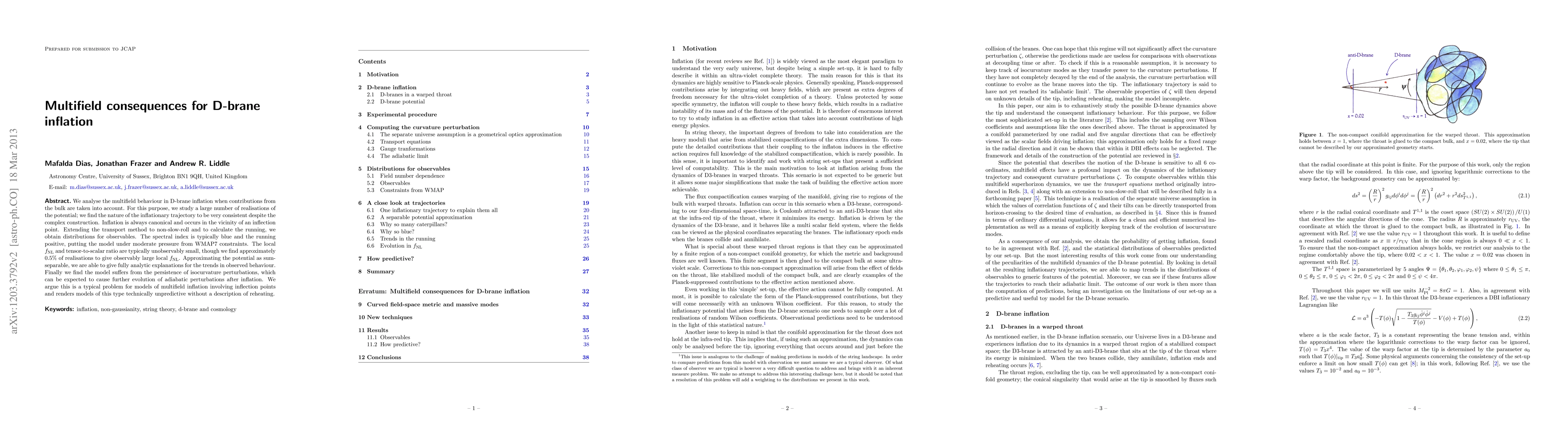 This paper investigates multifield dynamics in D-brane inflation, finding consistent inflationary trajectories near inflection points despite complex potentials. It reveals a typically blue spectral index and small tensor-to-scalar ratio, with a small fraction of realizations showing large local non-Gaussianity, and highlights the issue of isocurvature perturbations affecting predictability.