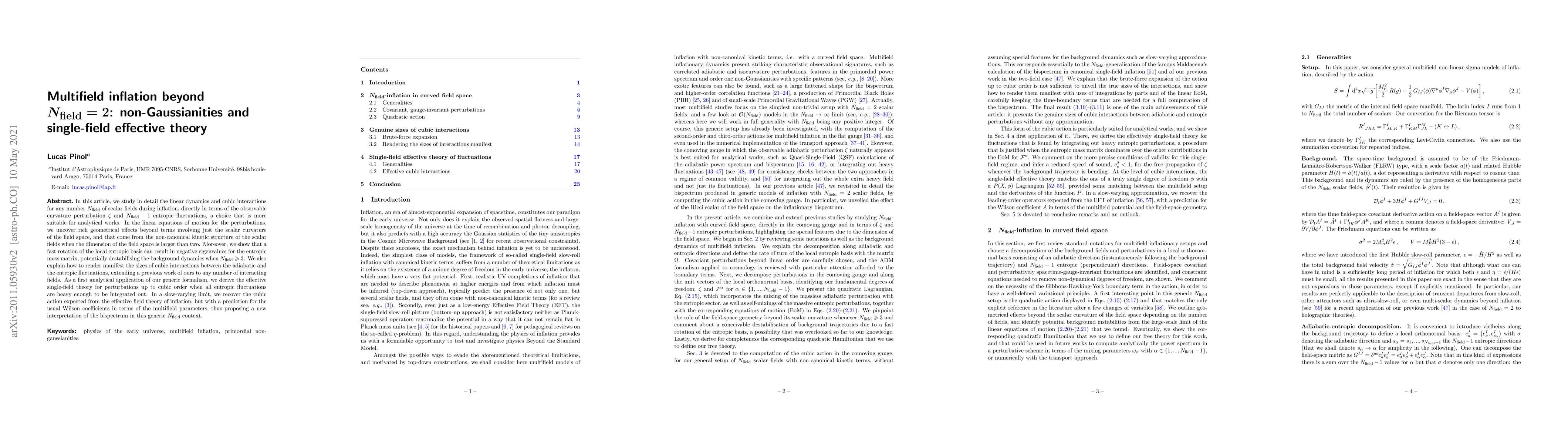In this article, we study in detail the linear dynamics and cubic interactions for any number $N_\mathrm{field}$ of scalar fields during inflation, directly in terms of the observable curvature perturbation $\zeta$ and $N_\mathrm{field}-1$ entropic fluctuations, a choice that is more suitable for analytical works. In the linear equations of motion for the perturbations, we uncover rich geometrical effects beyond terms involving just the scalar curvature of the field space, and that come from the non-canonical kinetic structure of the scalar fields when the dimension of the field space is larger than two. Moreover, we show that a fast rotation of the local entropic basis can result in negative eigenvalues for the entropic mass matrix, potentially destabilising the background dynamics when $N_\mathrm{field} \geqslant 3$. We also explain how to render manifest the sizes of cubic interactions between the adiabatic and the entropic fluctuations, extending a previous work of ours to any number of interacting fields. As a first analytical application of our generic formalism, we derive the effective single-field theory for perturbations up to cubic order when all entropic fluctuations are heavy enough to be integrated out. In a slow-varying limit, we recover the cubic action expected from the effective field theory of inflation, but with a prediction for the usual Wilson coefficients in terms of the multifield parameters, thus proposing a new interpretation of the bispectrum in this generic $N_\mathrm{field}$ context.