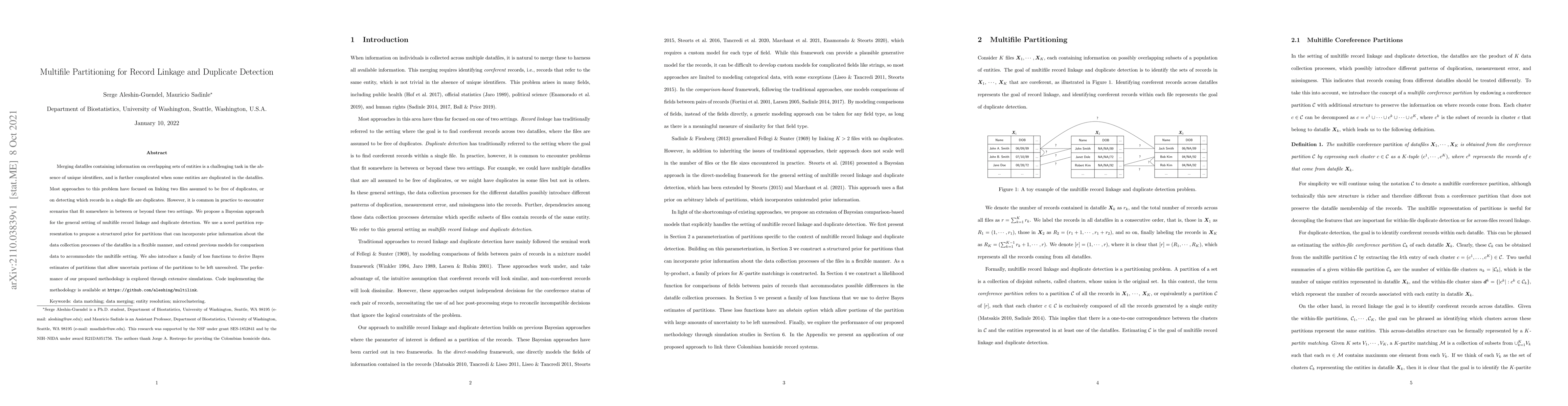 This paper proposes a Bayesian approach for multifile record linkage and duplicate detection, using a novel partition representation and structured prior to handle scenarios beyond traditional single-file or two-file settings. The methodology is evaluated through simulations, and implementation code is available for further exploration.