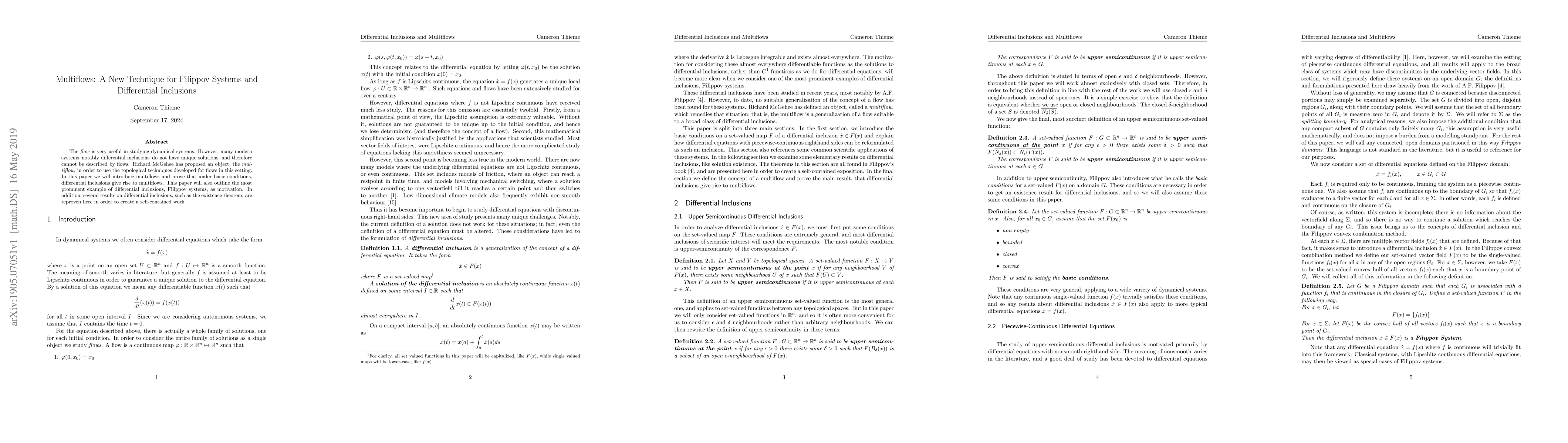 The flow is very useful in studying dynamical systems. However, many modern systems--notably differential inclusions--do not have unique solutions, and therefore cannot be described by flows. Richard McGehee has proposed an object, the multiflow, in order to use the topological techniques developed for flows in this setting. In this paper we will introduce multiflows and prove that under basic conditions, differential inclusions give rise to multiflows. This paper will also outline the most prominent example of differential inclusions, Filippov systems, as motivation. In addition, several results on differential inclusions, such as the existence theorem, are reproven here in order to create a self-contained work.