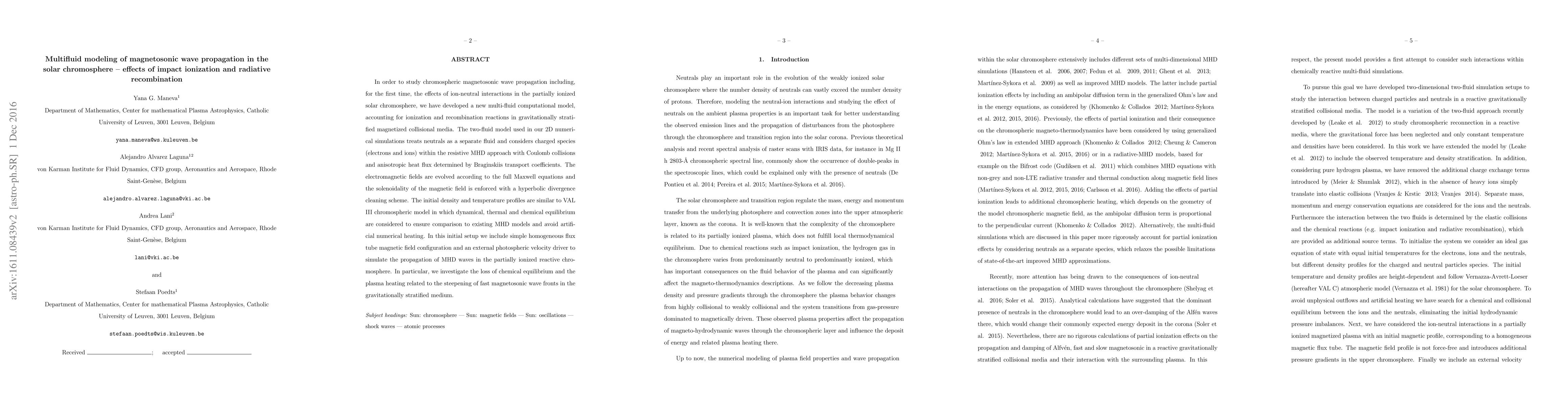 This research is significant as it provides a comprehensive multi-fluid approach to understand wave propagation in the solar chromosphere, considering ion-neutral interactions, impact ionization, and radiative recombination. It contributes to the understanding of plasma heating and cooling mechanisms, which are crucial for interpreting solar observations and modeling the solar atmosphere.