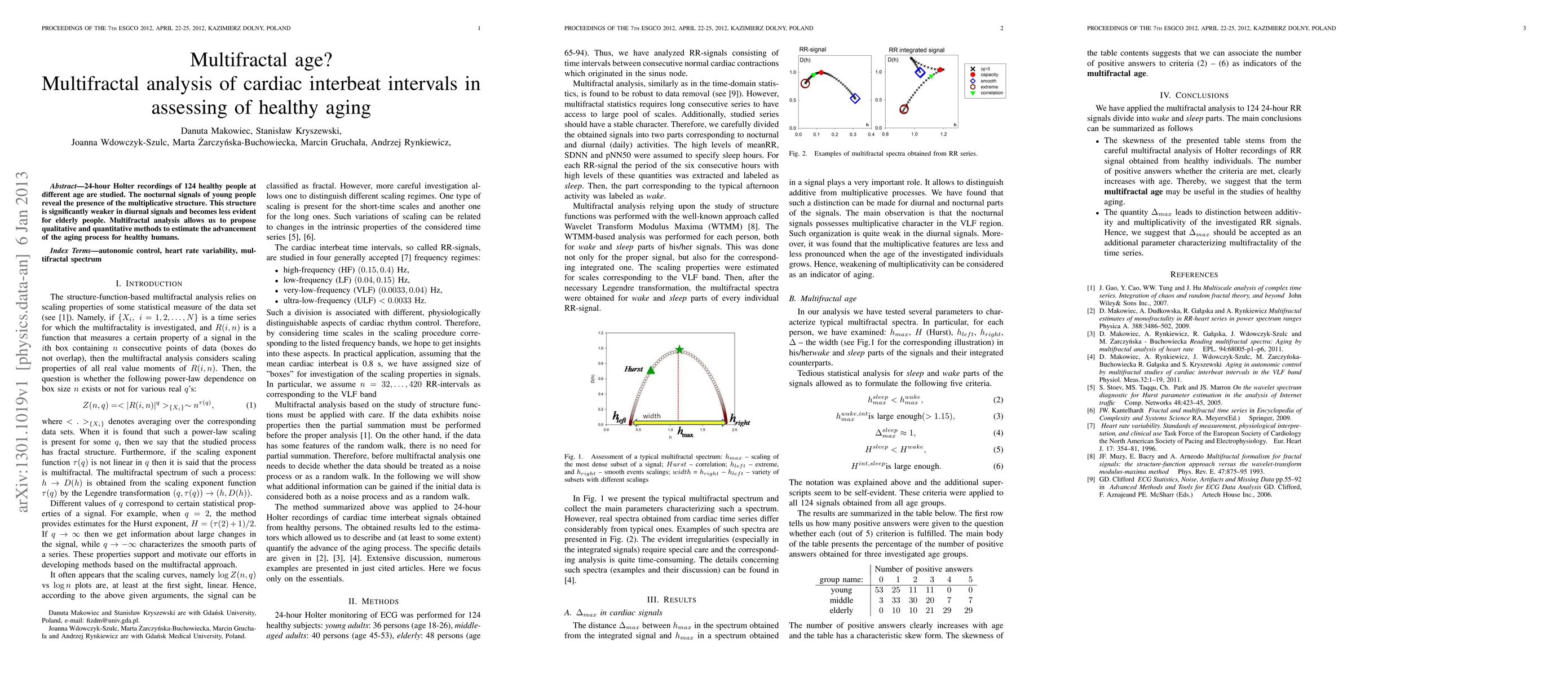 A study of 124 healthy people aged differently found that young adults showed a multiplicative structure in their heart rate variability, which weakened with age. Multifractal analysis suggests a potential method for assessing healthy aging.