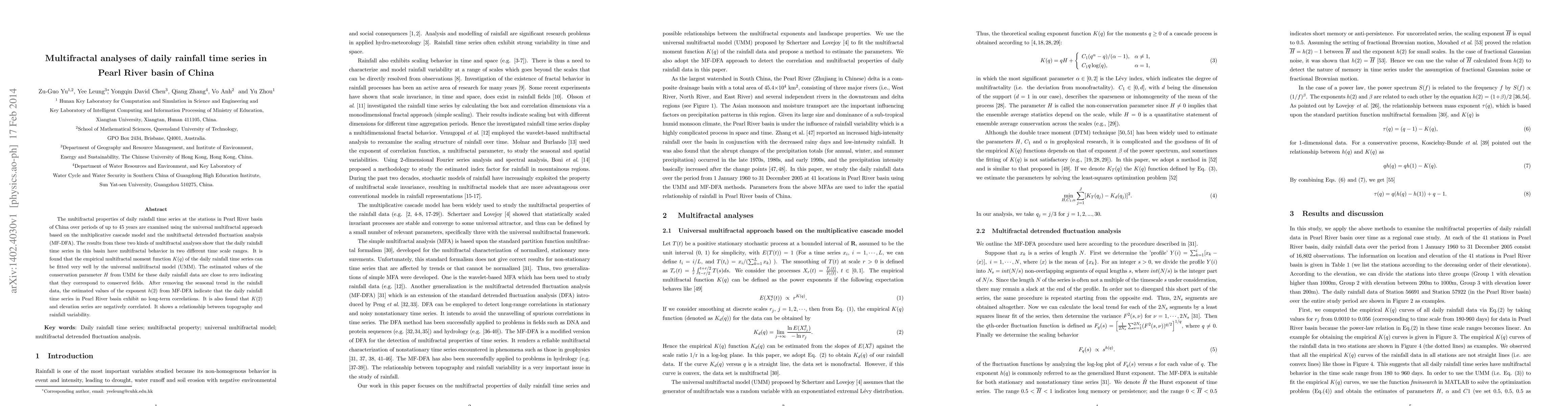 This research contributes to the existing literature on rainfall analysis by providing new insights into the dynamics of rainfall patterns in the Pearl River basin and demonstrating the effectiveness of multifractal analysis in capturing these patterns