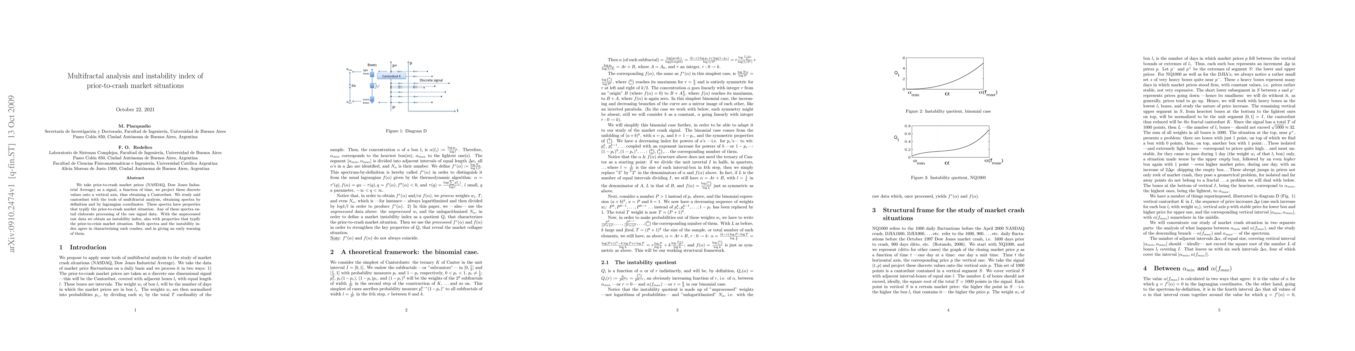We take prior-to-crash market prices (NASDAQ, Dow Jones Industrial Average) as a signal, a function of time, we project these discrete values onto a vertical axis, thus obtaining a Cantordust. We study said cantordust with the tools of multifractal analysis, obtaining spectra by definition and by lagrangian coordinates. These spectra have properties that typify the prior-to-crash market situation. Any of these spectra entail elaborate processing of the raw signal data. With the unprocessed raw data we obtain an instability index, also with properties that typify the prior-to-crisis market situation. Both spectra and the instability index agree in characterizing such crashes, and in giving an early warning of them.