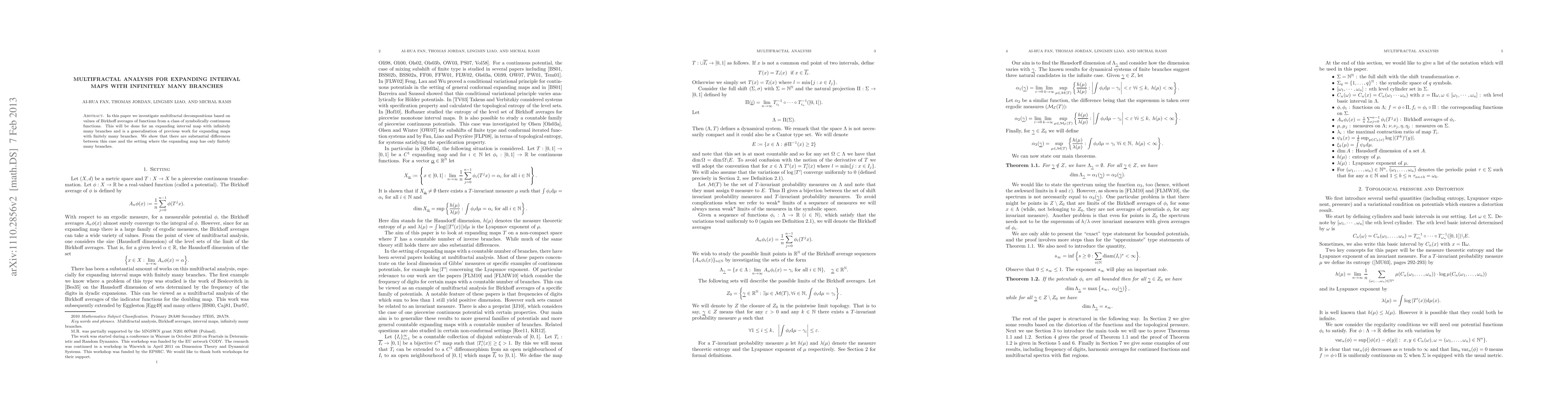 This paper explores multifractal decompositions for expanding interval maps with infinitely many branches, extending previous work on finite-branch maps. It highlights significant differences between these two settings.