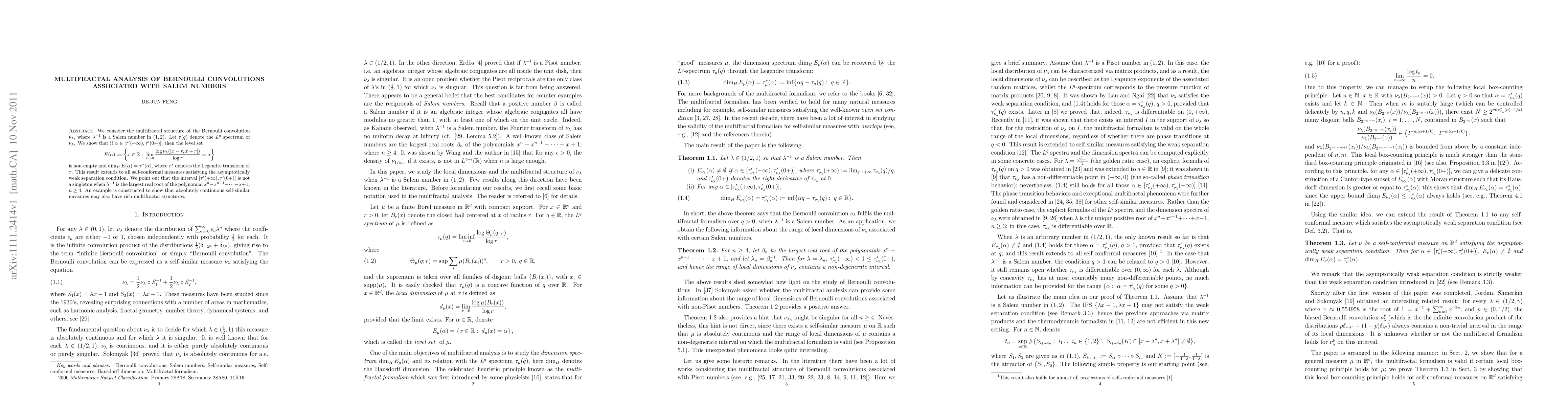 This paper explores the multifractal structure of Bernoulli convolutions associated with Salem numbers, showing that certain level sets have non-empty interior dimensions equal to the Legendre transform of their $L^q$ spectrum.