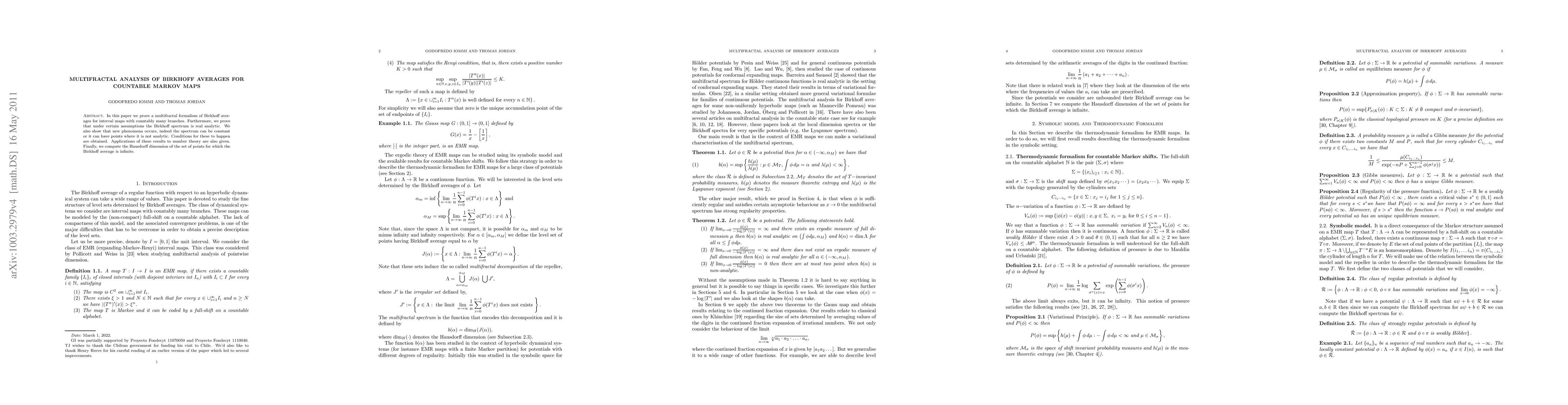 This paper establishes a multifractal formalism for Birkhoff averages in countable Markov maps and demonstrates the real analyticity of the Birkhoff spectrum under regularity conditions. It also computes the Hausdorff dimension of points where the Birkhoff average diverges, with applications extending to number theory.