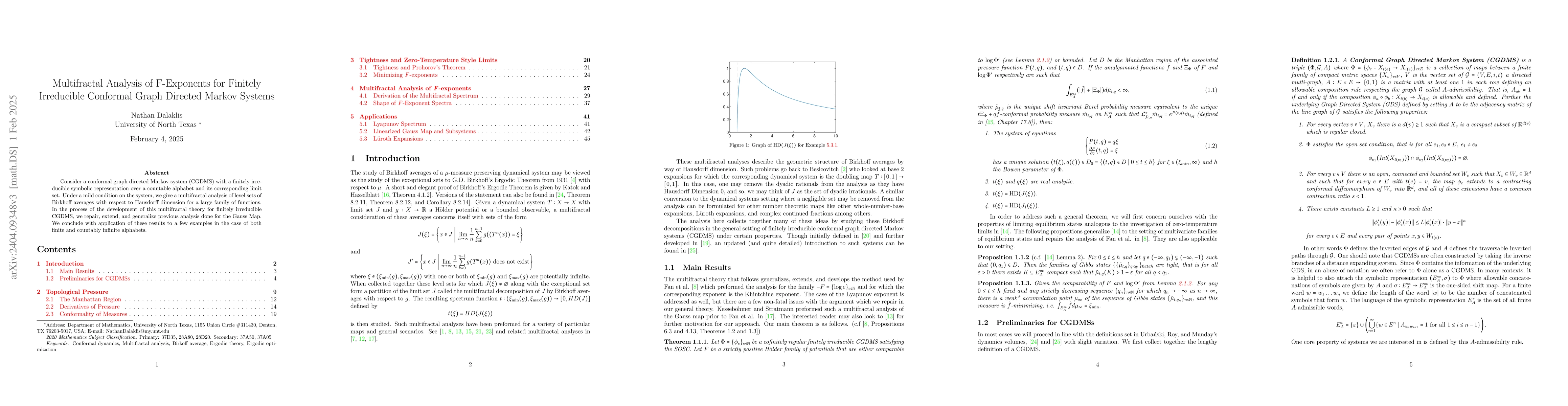 This paper conducts a multifractal analysis of F-exponents for finitely irreducible conformal graph directed Markov systems, focusing on the level sets of Birkhoff averages relative to Hausdorff dimension, and applies these findings to both finite and countably infinite system examples.