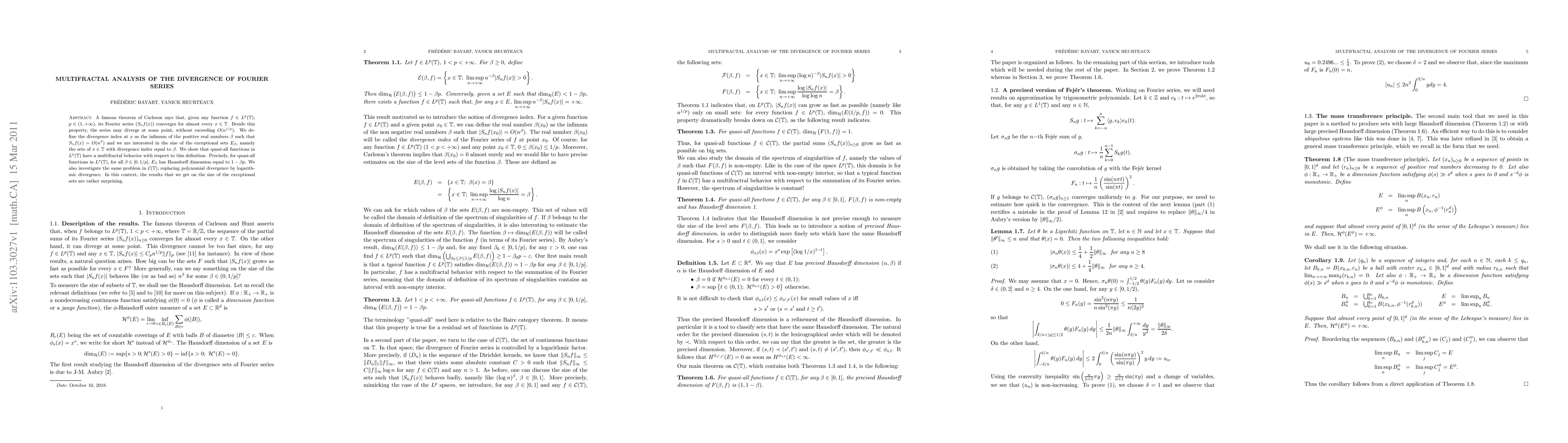 This paper explores the multifractal nature of the divergence of Fourier series for functions in $L^p(\mathbb{T})$ and $\mathcal{C}(\mathbb{T})$. It finds that for almost all functions, the exceptional sets where the series diverges have Hausdorff dimension $1-\beta p$ for $\beta \in [0, 1/p]$. Additionally, it reveals surprising results regarding logarithmic divergence in the continuous setting.