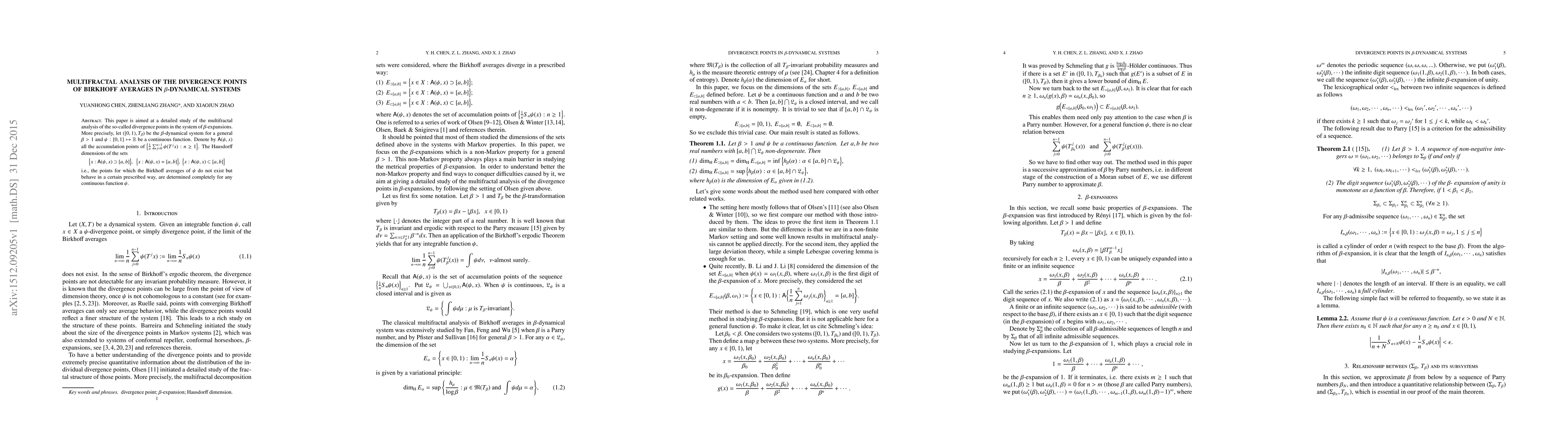 This paper is aimed at a detailed study of the multifractal analysis of the so-called divergence points in the system of $\beta$-expansions. More precisely, let $([0,1),T_{\beta})$ be the $\beta$-dynamical system for a general $\beta>1$ and $\psi:[0,1]\mapsto\mathbb{R}$ be a continuous function. Denote by $\textsf{A}(\psi,x)$ all the accumulation points of $\Big\{\frac{1}{n}\sum_{j=0}^{n-1}\psi(T^jx): n\ge 1\Big\}$. The Hausdorff dimensions of the sets $$\Big\{x:\textsf{A}(\psi,x)\supset[a,b]\Big\},\ \ \Big\{x:\textsf{A}(\psi,x)=[a,b]\Big\}, \ \Big\{x:\textsf{A}(\psi,x)\subset[a,b]\Big\}$$ i.e., the points for which the Birkhoff averages of $\psi$ do not exist but behave in a certain prescribed way, are determined completely for any continuous function $\psi$.