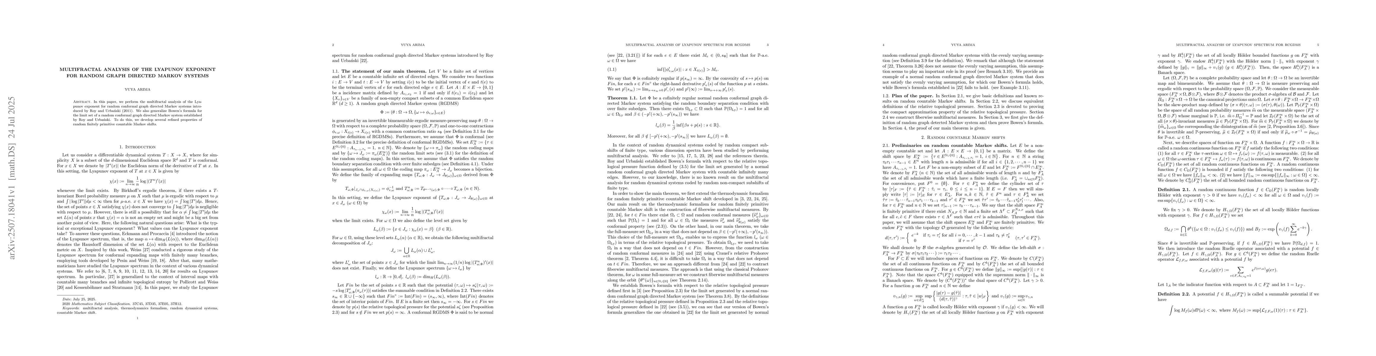The generalization of Bowen's formula and the development of refined properties for random Markov shifts offer novel insights into the multifractal structure of Lyapunov exponents in random dynamical systems.
