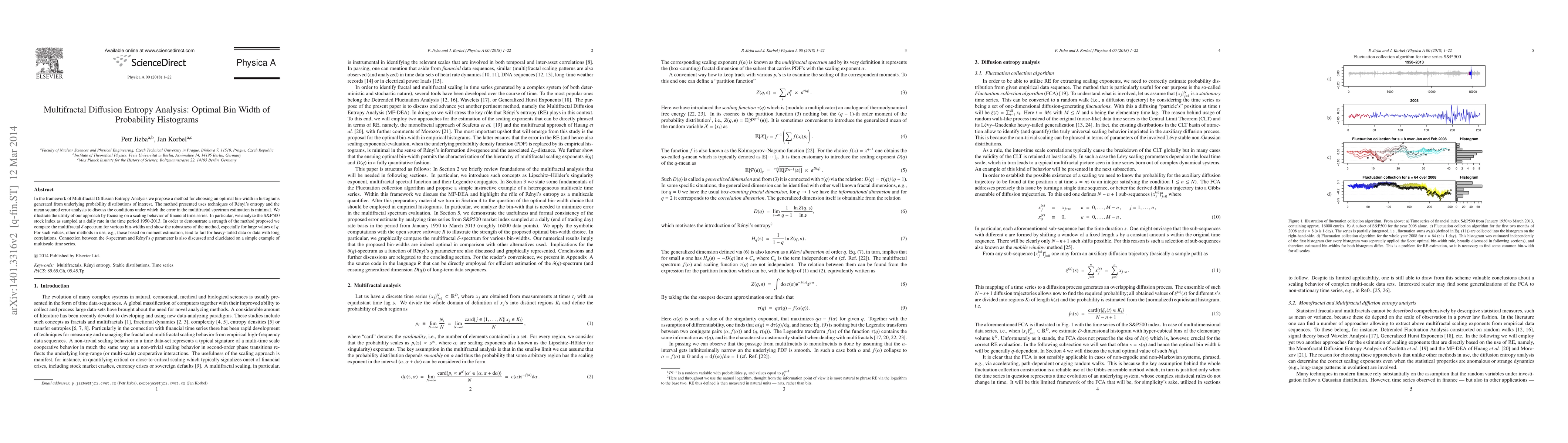 In the framework of Multifractal Diffusion Entropy Analysis we propose a method for choosing an optimal bin-width in histograms generated from underlying probability distributions of interest. The method presented uses techniques of R\'{e}nyi's entropy and the mean squared error analysis to discuss the conditions under which the error in the multifractal spectrum estimation is minimal. We illustrate the utility of our approach by focusing on a scaling behavior of financial time series. In particular, we analyze the S&P500 stock index as sampled at a daily rate in the time period 1950-2013. In order to demonstrate a strength of the method proposed we compare the multifractal $\delta$-spectrum for various bin-widths and show the robustness of the method, especially for large values of $q$. For such values, other methods in use, e.g., those based on moment estimation, tend to fail for heavy-tailed data or data with long correlations. Connection between the $\delta$-spectrum and R\'{e}nyi's $q$ parameter is also discussed and elucidated on a simple example of multiscale time series.