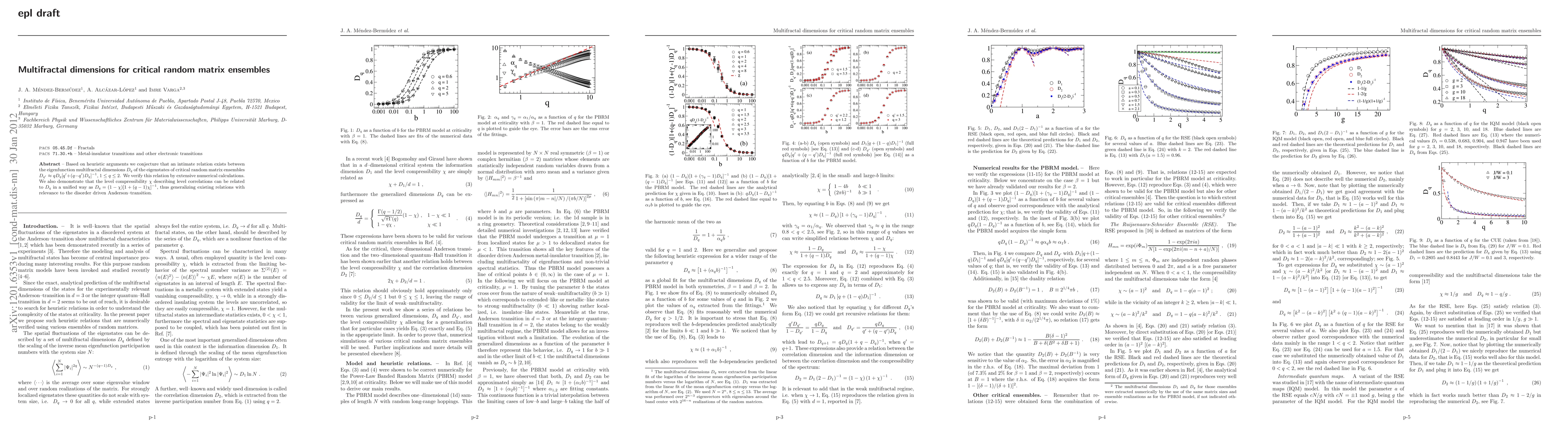 The paper introduces a set of heuristic relations between multifractal dimensions Dq and Dq' and level compressibility χ, verified numerically for various critical random matrix ensembles, providing a unified description of multifractal properties in disordered quantum systems.