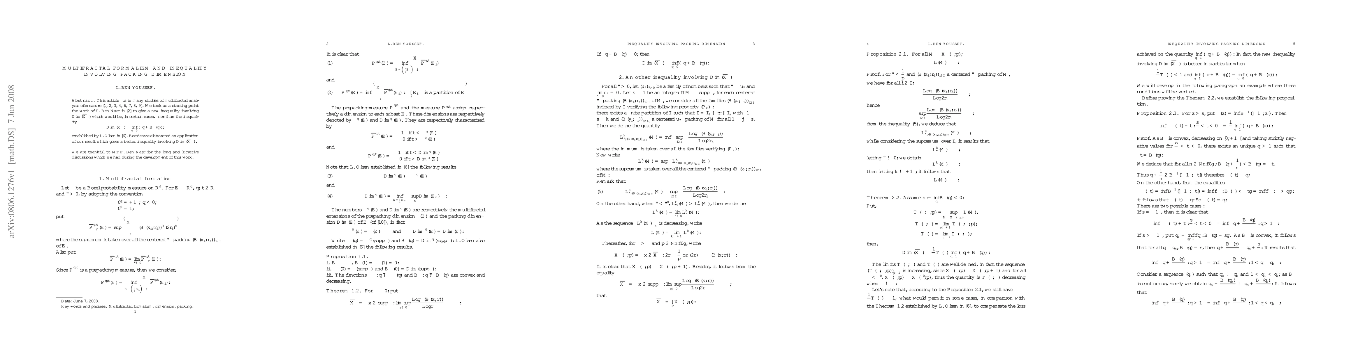 This article fits in many studies of multifractal analysis of measure. We took as a starting point the work of F. Ben Nasr in " Calculs de dimension de packing " to give a new inequality involving $Dim(\bar{X}^{\alpha})$ which would be, in certain cases, finer than the inequality established by L. Olsen in " A multifractal formalism " . Besides we elaborated an application of our result which gives a better inequality involving $Dim(\bar{X}^{\alpha})$.