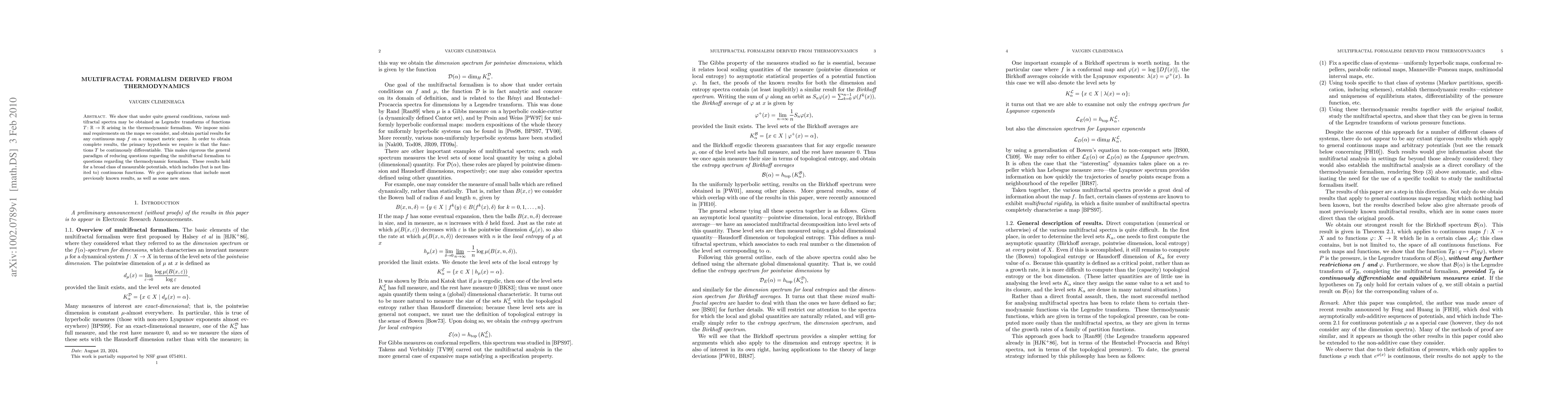 This paper demonstrates that multifractal spectra can be derived from thermodynamic formalism via Legendre transforms of functions arising in thermodynamic contexts. It establishes general conditions under which these transformations are valid, requiring only continuous maps and achieving complete results when the functions are continuously differentiable.