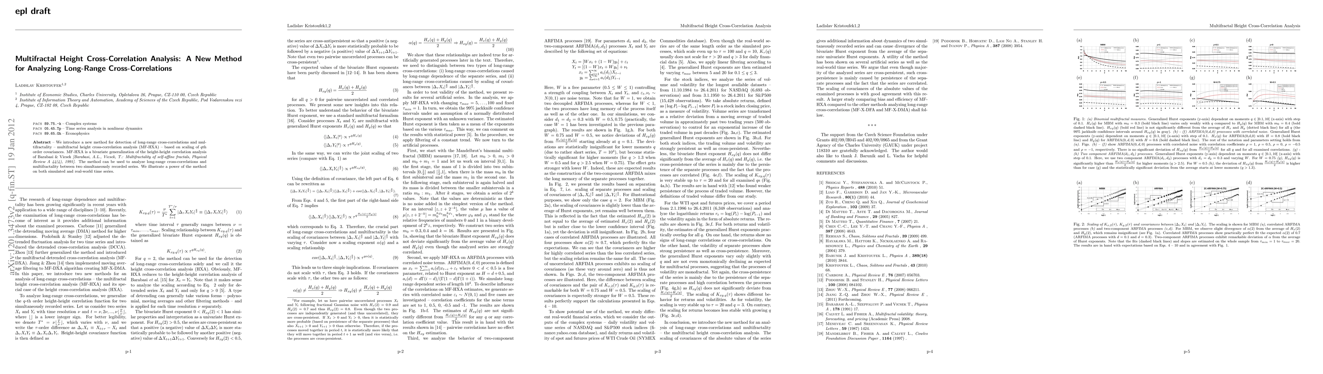 We introduce a new method for detection of long-range cross-correlations and multifractality - multifractal height cross-correlation analysis (MF-HXA) - based on scaling of qth order covariances. MF-HXA is a bivariate generalization of the height-height correlation analysis of Barabasi & Vicsek [Barabasi, A.L., Vicsek, T.: Multifractality of self-affine fractals, Physical Review A 44(4), 1991]. The method can be used to analyze long-range cross-correlations and multifractality between two simultaneously recorded series. We illustrate a power of the method on both simulated and real-world time series.