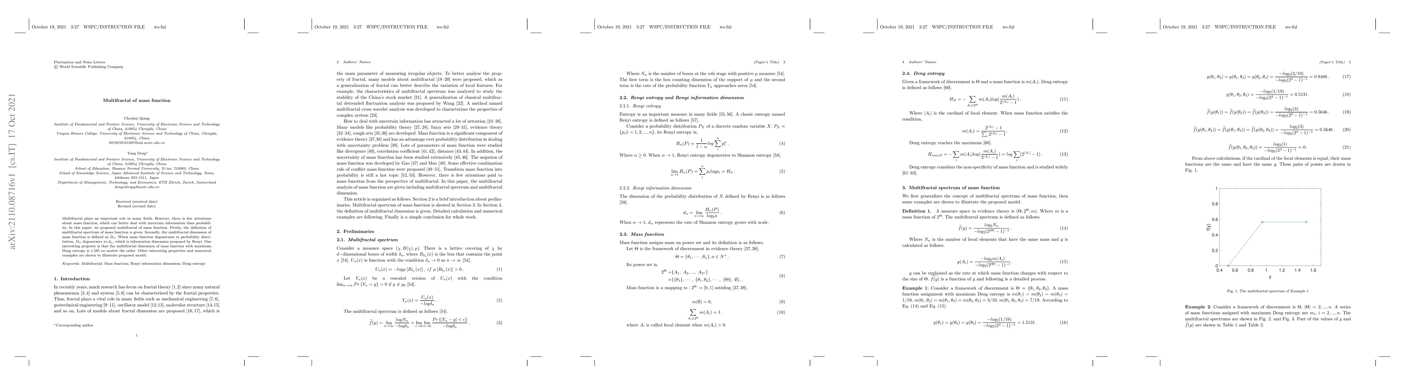 This paper introduces the concept of multifractal of mass function, offering a framework to handle uncertain information more effectively than probability. It defines the multifractal dimension $D_{\alpha}$ and demonstrates that it reduces to Renyi's information dimension $d_{\alpha}$ when mass function becomes a probability distribution, highlighting that the multifractal dimension with maximum Deng entropy is consistently 1.585 regardless of the order.
