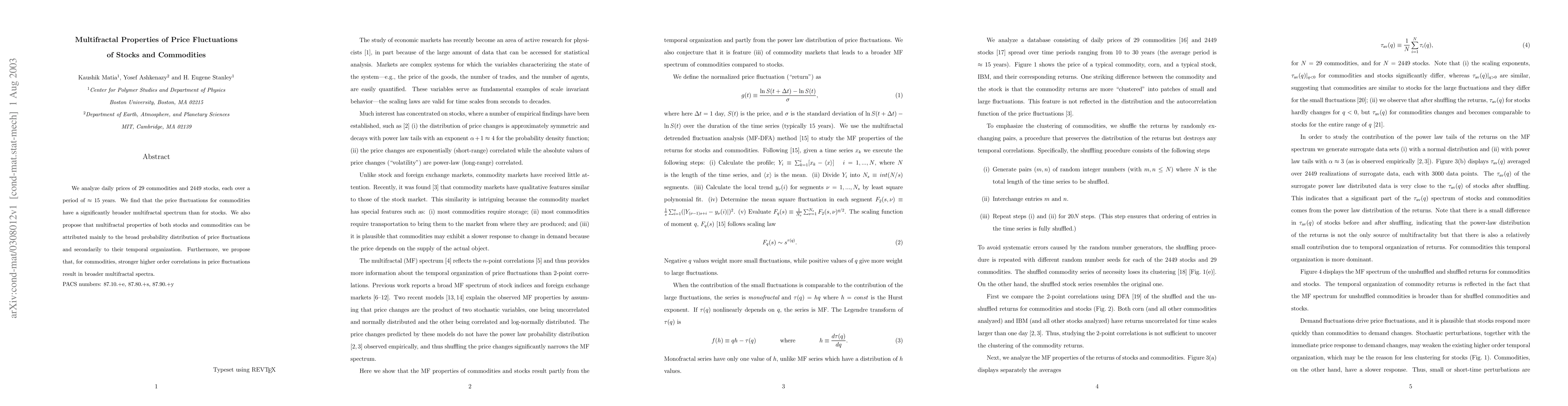 A study analyzing stock and commodity prices over 15 years found that commodities have broader multifractal spectra due to their probability distribution and higher order correlations, while stocks exhibit narrower spectra.