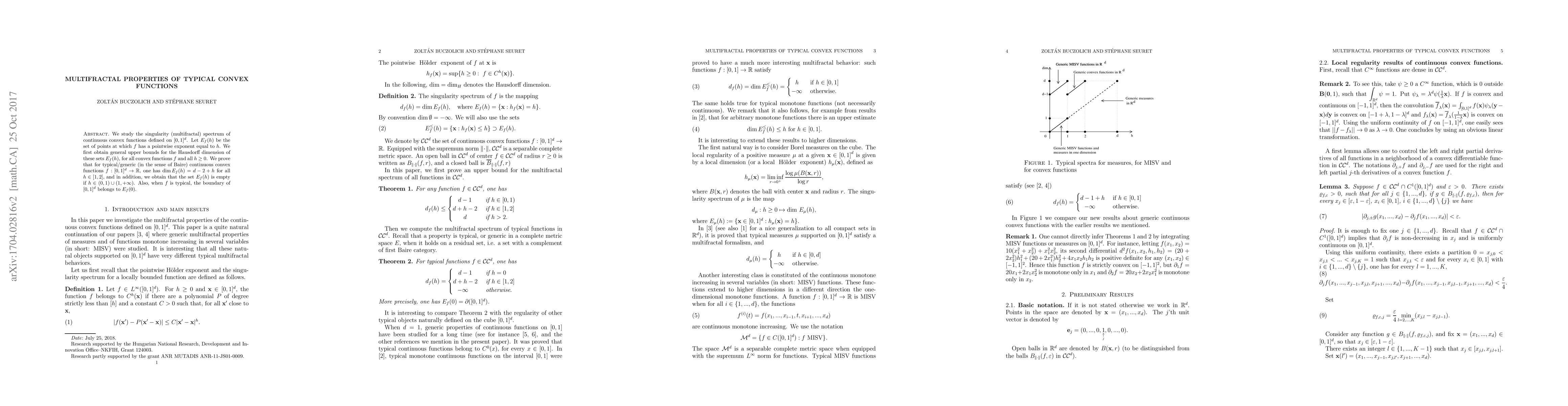 We study the singularity (multifractal) spectrum of continuous convex functions defined on $[0,1]^{d}$. Let $E_f({h}) $ be the set of points at which $f$ has a pointwise exponent equal to $h$. We first obtain general upper bounds for the Hausdorff dimension of these sets $E_f(h)$, for all convex functions $f$ and all $h\geq 0$. We prove that for typical/generic (in the sense of Baire) continuous convex functions $f:[0,1]^{d}\to \mathbb{R} $, one has $\dim E_f(h) =d-2+h$ for all $h\in[1,2],$ and in addition, we obtain that the set $ E_f({h} )$ is empty if $h\in (0,1)\cup (1,+\infty)$. Also, when $f$ is typical, the boundary of $[0,1]^{d}$ belongs to $E_{f}({0})$.