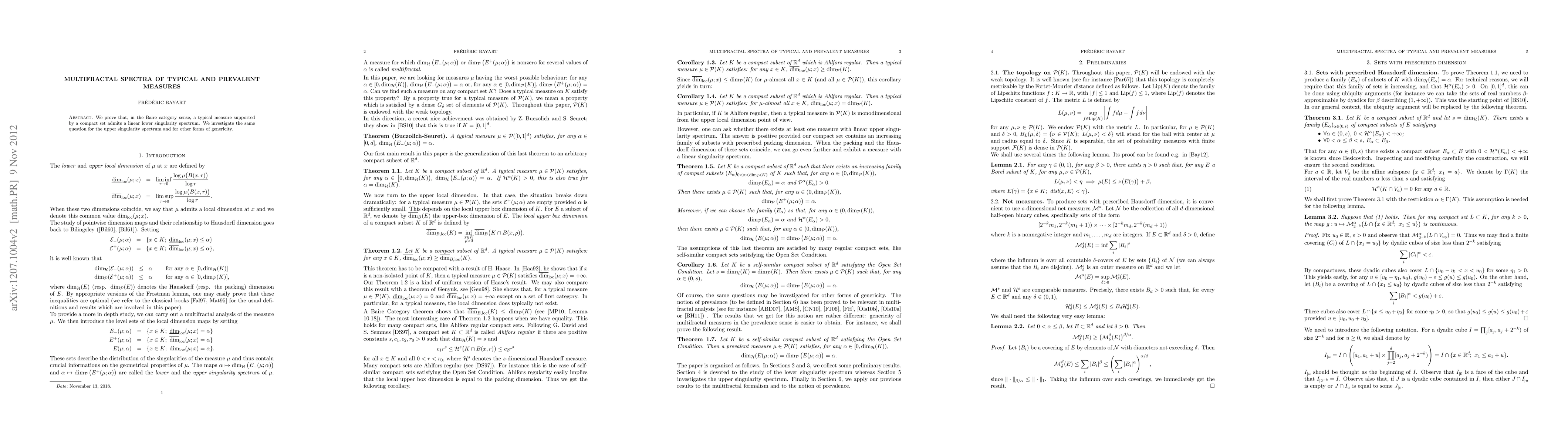 The study also investigates genericity questions for upper singularity spectra and other forms of genericity, shedding new light on the behavior of measures in mathematical analysis.