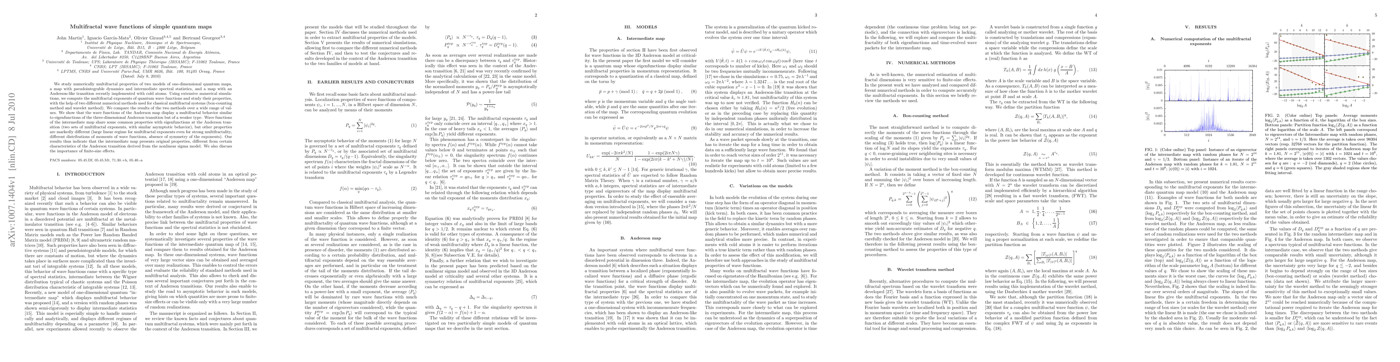 This paper numerically investigates the multifractal properties of wave functions in two one-dimensional quantum maps, revealing distinct behaviors. The Anderson map exhibits weaker multifractal behavior compared to three-dimensional analogs, while the intermediate map shows unique properties differing from the Anderson transition, highlighting the significance of finite-size effects.