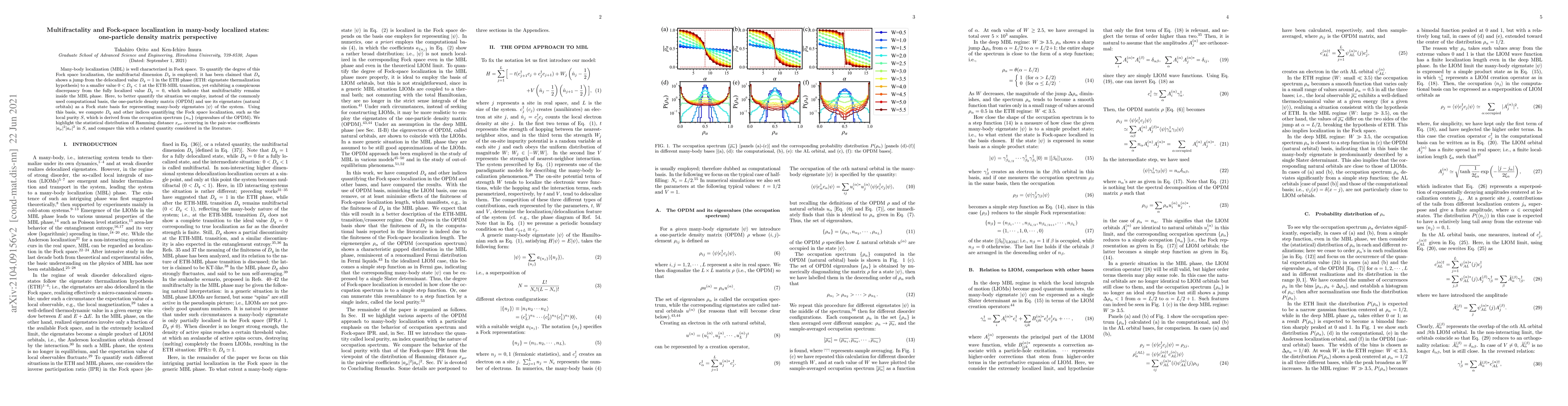 This research investigates many-body localization (MBL) through the lens of one-particle density matrix (OPDM), quantifying Fock space localization using multifractal dimension $D_q$ and local purity $S$. It finds that multifractality persists within the MBL phase, contrary to expectations of full localization, and highlights the statistical distribution of Hamming distance in the OPDM coefficients.