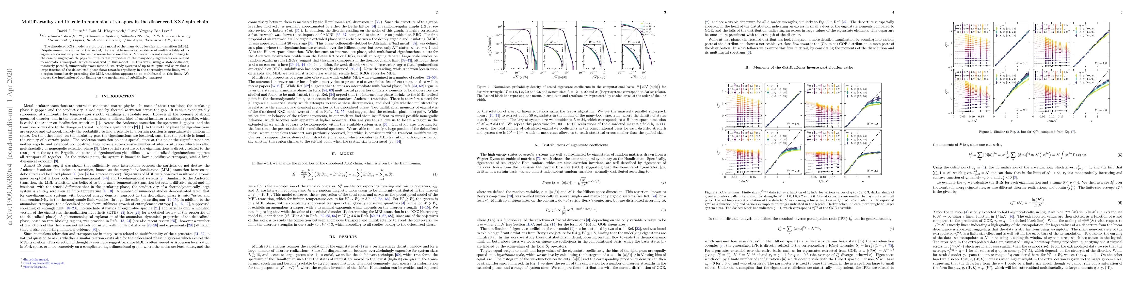 The disordered XXZ model is a prototype model of the many-body localization transition (MBL). Despite numerous studies of this model, the available numerical evidence of multifractality of its eigenstates is not very conclusive due severe finite size effects. Moreover it is not clear if similarly to the case of single-particle physics, multifractal properties of the many-body eigenstates are related to anomalous transport, which is observed in this model. In this work, using a state-of-the-art, massively parallel, numerically exact method, we study systems of up to 24 spins and show that a large fraction of the delocalized phase flows towards ergodicity in the thermodynamic limit, while a region immediately preceding the MBL transition appears to be multifractal in this limit. We discuss the implication of our finding on the mechanism of subdiffusive transport.
