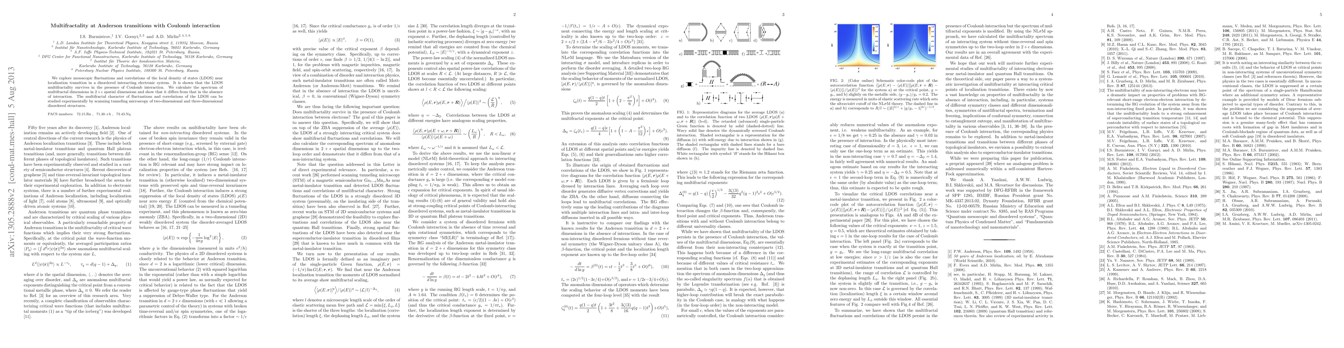 This paper investigates the multifractality of local density of states (LDOS) near the Anderson localization transition in disordered electronic systems with Coulomb interactions. It finds that multifractality persists despite interactions and provides a distinct spectrum of multifractal dimensions compared to non-interacting systems, suggesting experimental verification via scanning tunneling microscopy.