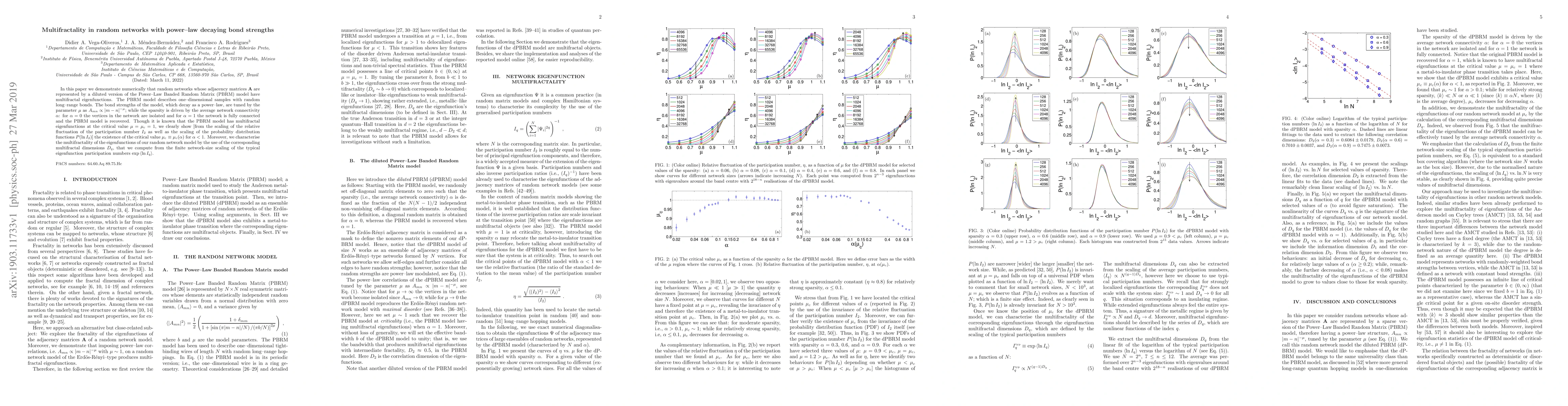 Random networks generated using a modified Power-Law Banded Random Matrix model exhibit multifractal eigenfunctions depending on the decay strength of bond strengths and network connectivity.