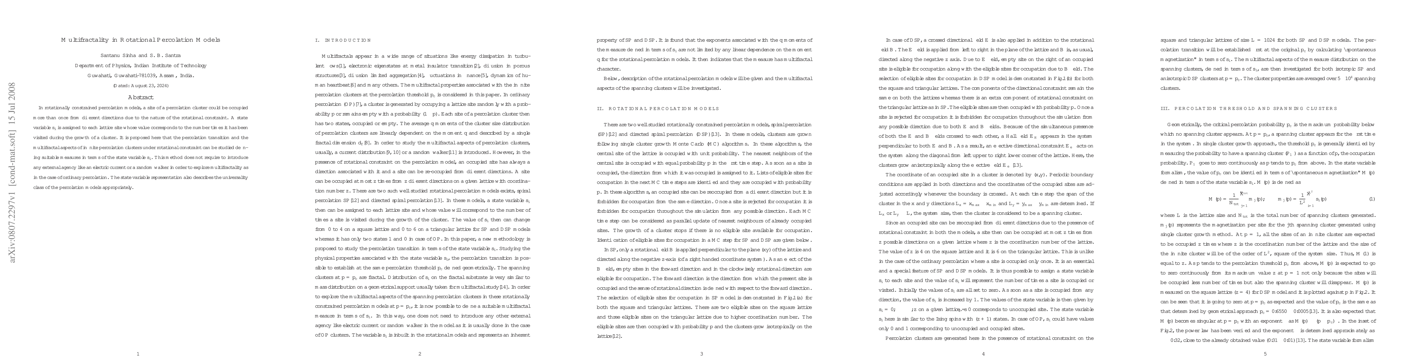 This paper explores multifractality in rotationally constrained percolation models using a state variable $s_i$ to track site visits, proposing a method to study the percolation transition and multifractal characteristics without external influences, thereby describing the universality class of these models.