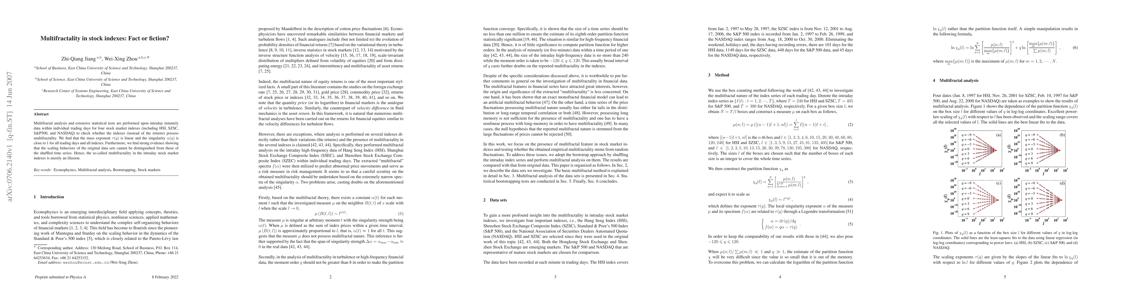 A study found that stock market indexes lack true multifractality, with scaling behaviors indistinguishable from shuffled time series, suggesting the phenomenon is an illusion.