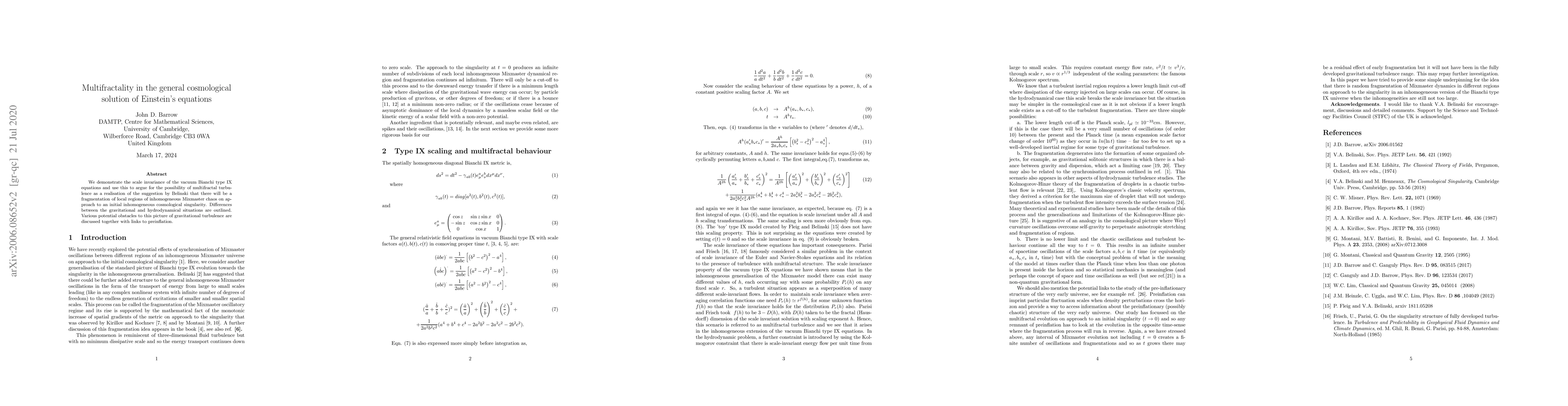 We demonstrate the scale invariance of the vacuum Bianchi type IX equations and use this to argue for the possibility of multifractal turbulence as a realisation of the suggestion by Belinski that there will be a fragmentation of local regions of inhomogeneous Mixmaster chaos on approach to an initial inhomogeneous cosmological singularity. Differences between the gravitational and hydrodynamical situations are outlined. Various potential obstacles to this picture of gravitational turbulence are discussed.