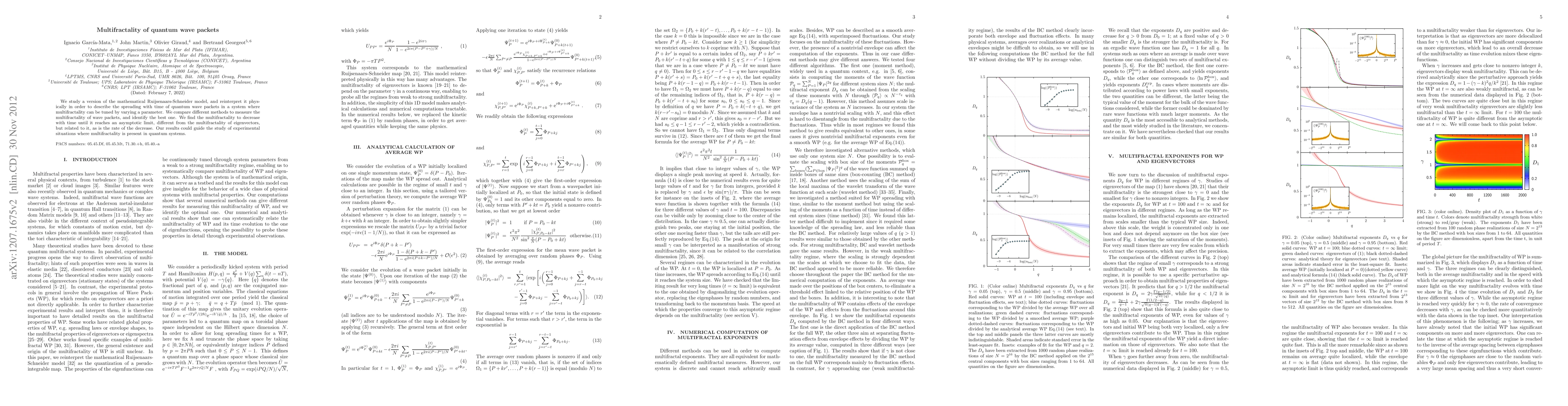 We study a version of the mathematical Ruijsenaars-Schneider model, and reinterpret it physically in order to describe the spreading with time of quantum wave packets in a system where multifractality can be tuned by varying a parameter. We compare different methods to measure the multifractality of wave packets, and identify the best one. We find the multifractality to decrease with time until it reaches an asymptotic limit, different from the mulifractality of eigenvectors, but related to it, as is the rate of the decrease. Our results could guide the study of experimental situations where multifractality is present in quantum systems.