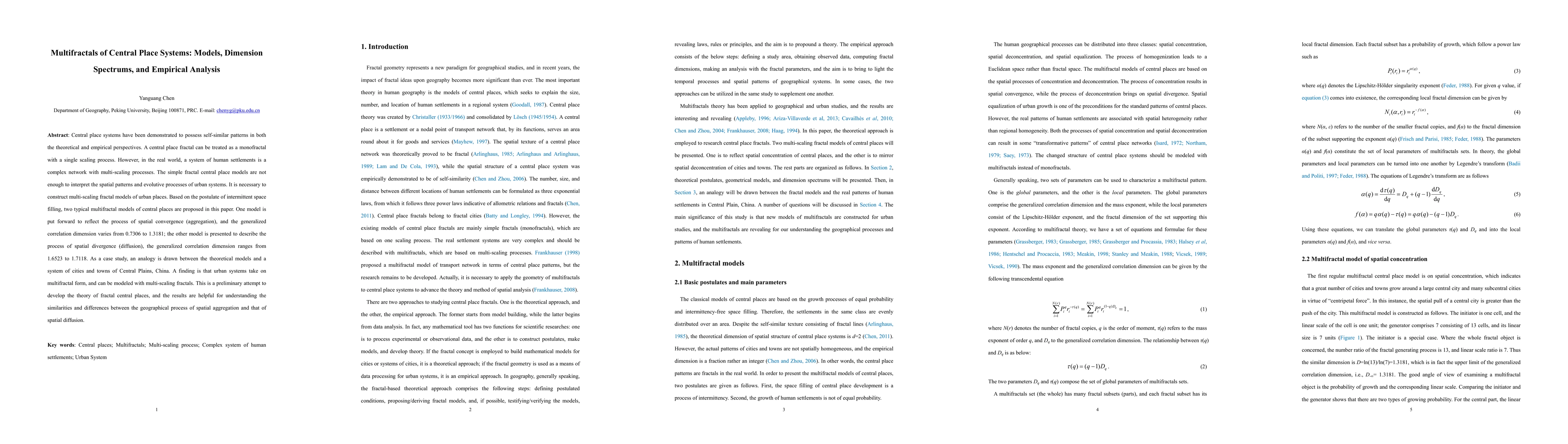 This paper proposes multifractal models to better interpret the complex spatial patterns of urban systems, which exhibit multi-scaling processes. It introduces two models—one for spatial convergence and one for spatial divergence—and finds that urban systems in Central Plains, China, conform to multifractal forms, aiding in understanding the geographical processes of spatial aggregation and diffusion.