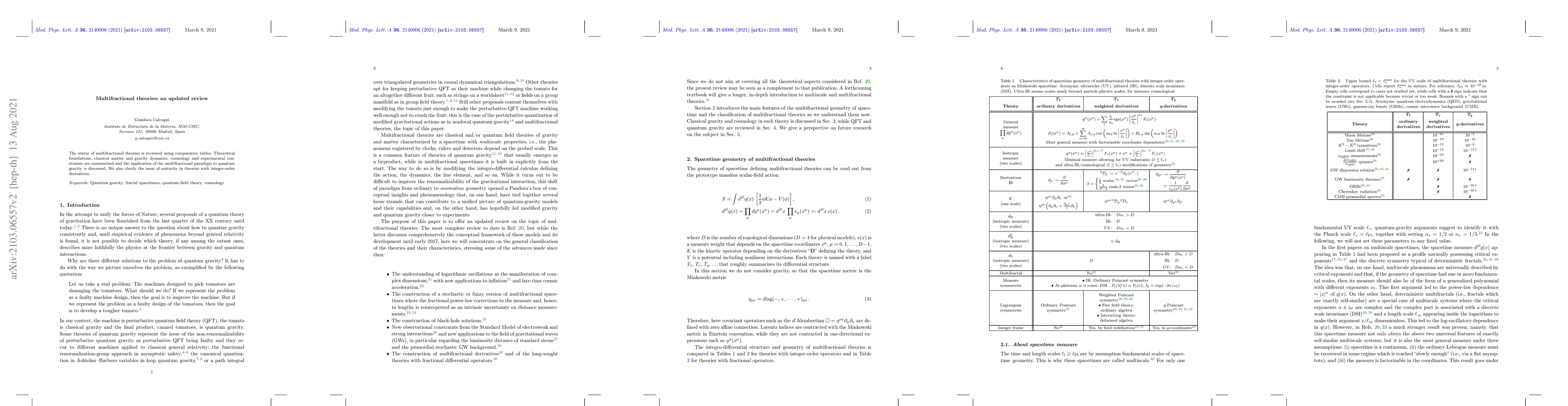 The status of multifractional theories is reviewed using comparative tables. Theoretical foundations, classical matter and gravity dynamics, cosmology and experimental constraints are summarized and the application of the multifractional paradigm to quantum gravity is discussed. We also clarify the issue of unitarity in theories with integer-order derivatives.