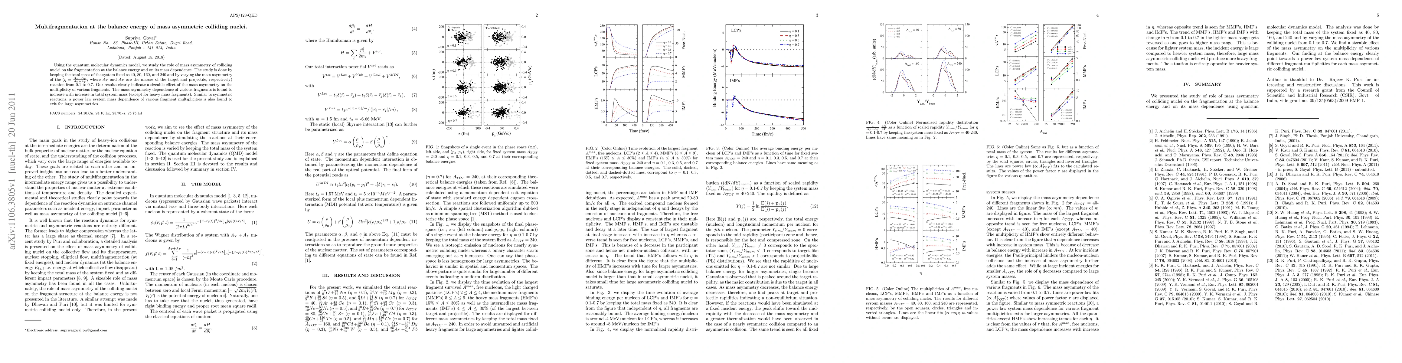 This study uses the quantum molecular dynamics model to investigate how mass asymmetry in colliding nuclei affects fragmentation at balance energy. Results show a significant impact of mass asymmetry on fragment multiplicity, with this dependence growing with increasing total system mass, except for heavy fragments.