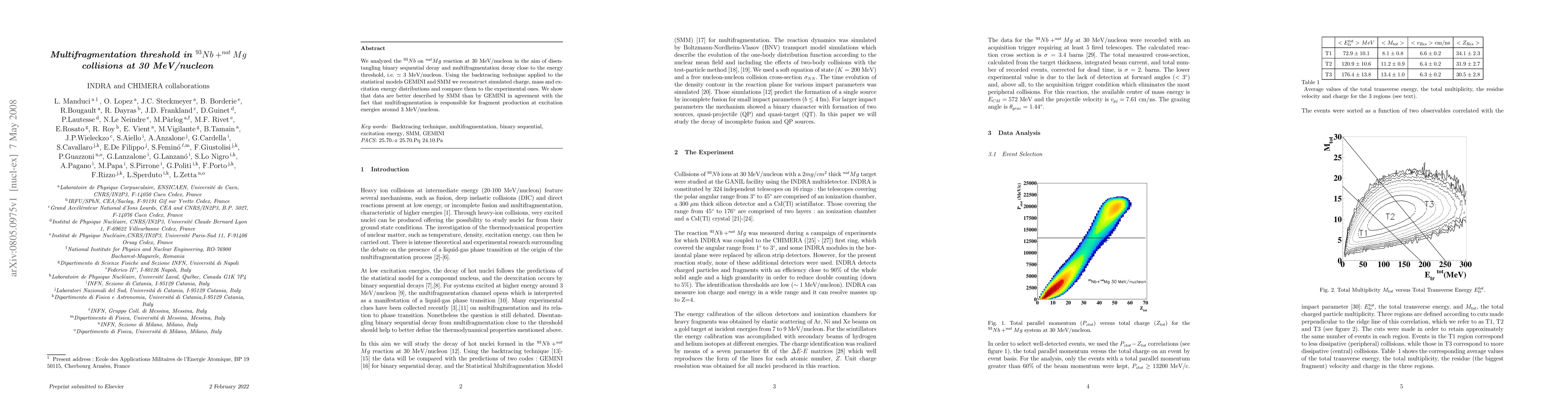 We analyzed the $^{93}Nb$ on $^{nat}Mg$ reaction at 30 MeV/nucleon in the aim of disentangling binary sequential decay and multifragmentation decay close to the energy threshold, i.e. $\simeq 3$ MeV/nucleon. Using the backtracing technique applied to the statistical models GEMINI and SMM we reconstruct simulated charge, mass and excitation energy distributions and compare them to the experimental ones. We show that data are better described by SMM than by GEMINI in agreement with the fact that multifragmentation is responsible for fragment production at excitation energies around 3 MeV/nucleon.