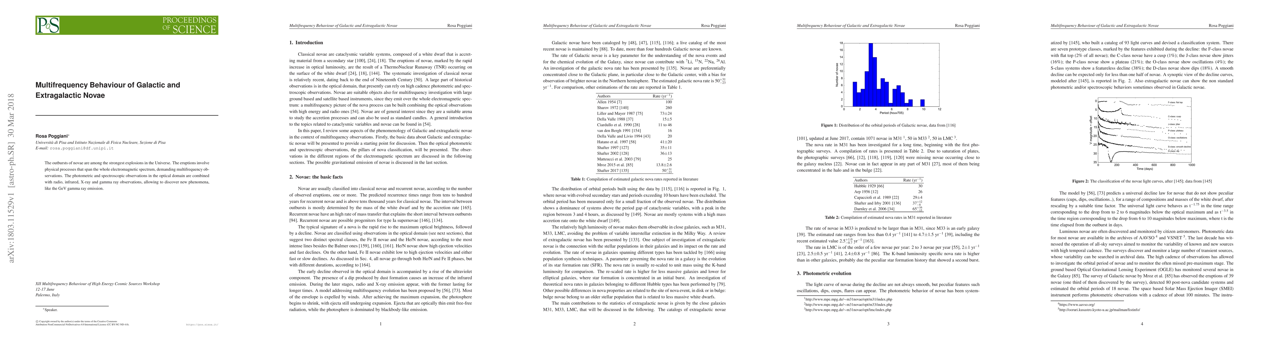The outbursts of novae are among the strongest explosions in the Universe. The eruptions involve physical processes that span the whole electromagnetic spectrum, demanding multifrequency observations. The photometric and spectroscopic observations in the optical domain are combined with radio, infrared, X-ray and gamma ray observations, allowing to discover new phenomena, like the GeV gamma ray emission.