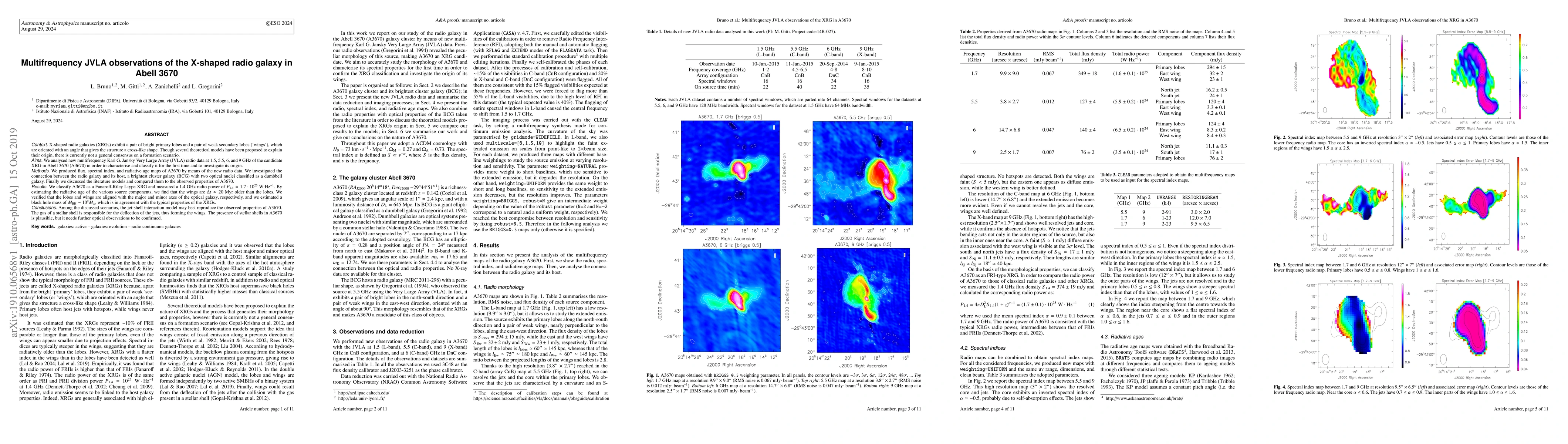 Context. X-shaped radio galaxies (XRGs) exhibit a pair of bright primary lobes and a pair of weak secondary lobes (wings), which are oriented with an angle that gives the structure a cross-like shape. Though several theoretical models have been proposed to explain their origin, there is currently not a general consensus on a formation scenario. Aims. We analysed new multifrequency Karl G. Jansky Very Large Array (JVLA) radio data at 1.5, 5.5, 6, and 9 GHz of the candidate XRG in Abell 3670 (A3670) in order to characterise and classify it for the first time and to investigate its origin. Methods. We produced flux, spectral index, and radiative age maps of A3670 by means of the new radio data. We investigated the connection between the radio galaxy and its host, a brightest cluster galaxy (BCG) with two optical nuclei classified as a dumbbell galaxy. Finally we discussed the literature models and compared them to the observed properties of A3670. Results. We classify A3670 as a Fanaroff-Riley I-type XRG and measured a 1.4 GHz radio power of 1.7 x 10^25 W Hz-1. By estimating the radiative age of the various source components, we find that the wings are 20 Myr older than the lobes. We verified that the lobes and wings are aligned with the major and minor axes of the optical galaxy, respectively, and we estimated a black hole mass of 10^9 Msun , which is in agreement with the typical properties of the XRGs. Conclusions. Among the discussed scenarios, the jet-shell interaction model may best reproduce the observed properties of A3670. The gas of a stellar shell is responsible for the deflection of the jets, thus forming the wings. The presence of stellar shells in A3670 is plausible, but it needs further optical observations to be confirmed.