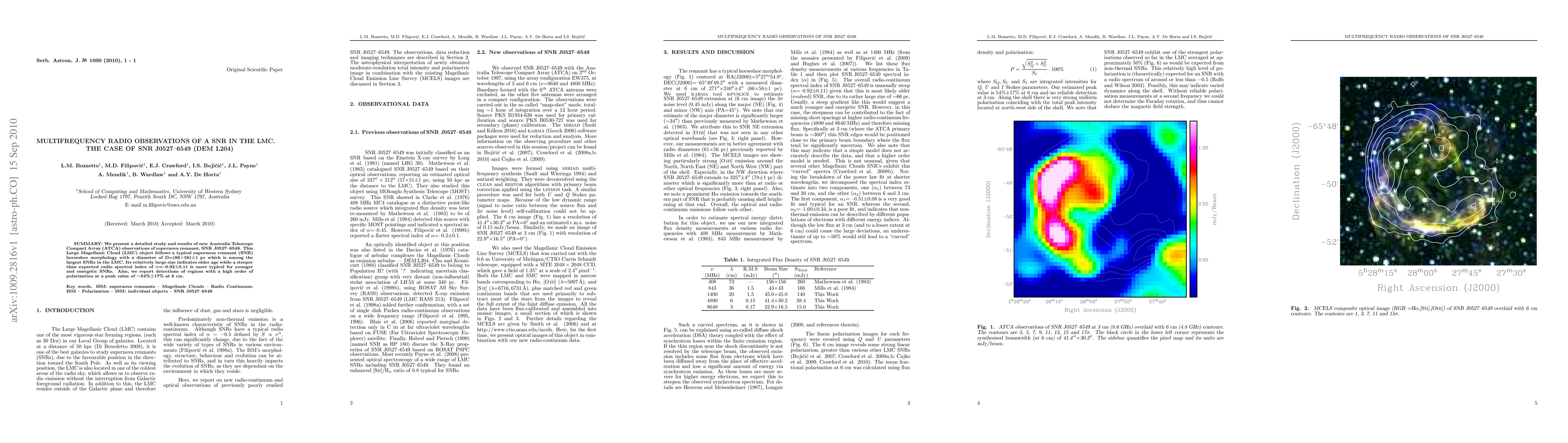 We present a detailed study and results of new Australia Telescope Compact Array (ATCA) observations of supernova remnant, SNR J0527-6549. This Large Magellanic Cloud (LMC) ob ject follows a typical supernova remnant (SNR) horseshoe morphology with a diameter of D=(66x58)+-1 pc which is among the largest SNRs in the LMC. Its relatively large size indicates older age while a steeper than expected radio spectral index of aplha=-0.92+-0.11 is more typical for younger and energetic SNRs. Also, we report detections of regions with a high order of polarization at a peak value of ~54+-17% at 6 cm.