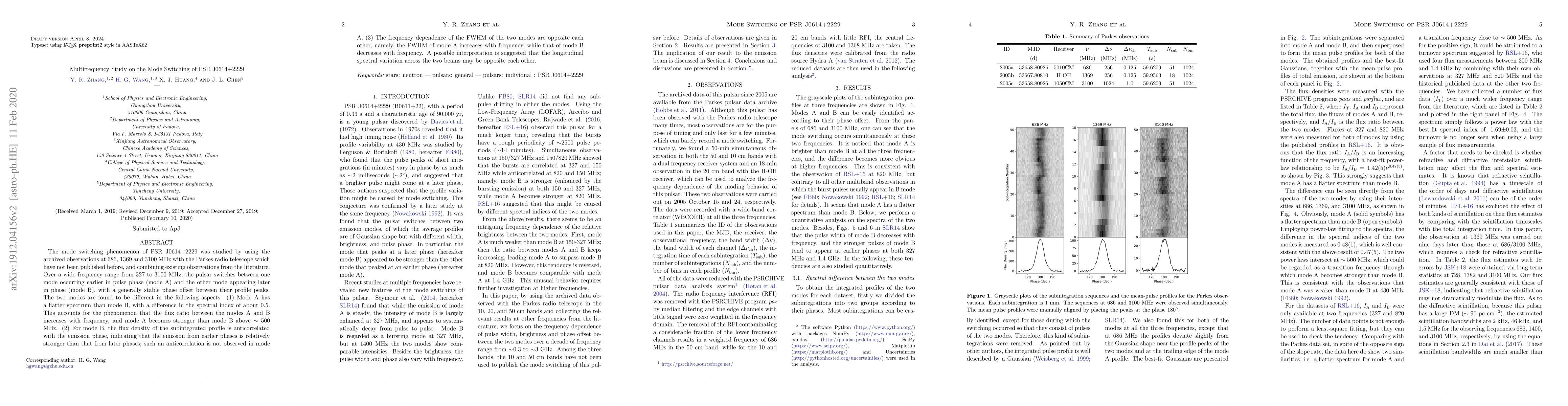 Researchers studied the mode switching of PSR J0614+2229 using archived radio telescope data, finding two distinct modes (A and B) with different spectral properties and frequency dependencies.