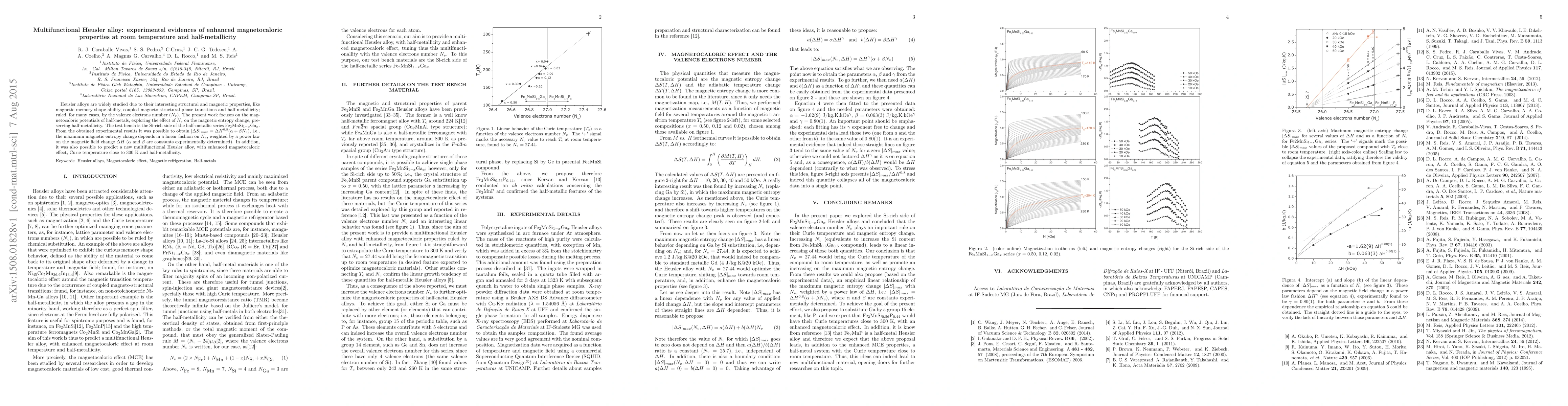 Heusler alloys are widely studied due to their interesting structural and magnetic properties, like magnetic memory shape ability, coupled magneto-structural phase transitions and half-metallicity; ruled, for many cases, by the valence electrons number ($N_v$). The present work focuses on the magnetocaloric potentials of half-metals, exploring the effect of $N_v$ on the magnetic entropy change, preserving half-metallicity. The test bench is the Si-rich side of the half-metallic series Fe$_2$MnSi$_{1-x}$Ga$_x$. From the obtained experimental results it was possible to obtain $|\Delta S|_{max}=\Delta H^{0.8}(\alpha+\beta N_v)$, i.e., the maximum magnetic entropy change depends in a linear fashion on $N_v$, weighted by a power law on the magnetic field change $\Delta H$ ($\alpha$ and $\beta$ are constants experimentally determined). In addition, it was also possible to predict a new multifunctional Heusler alloy, with enhanced magnetocaloric effect, Curie temperature close to 300 K and half-metallicity.
